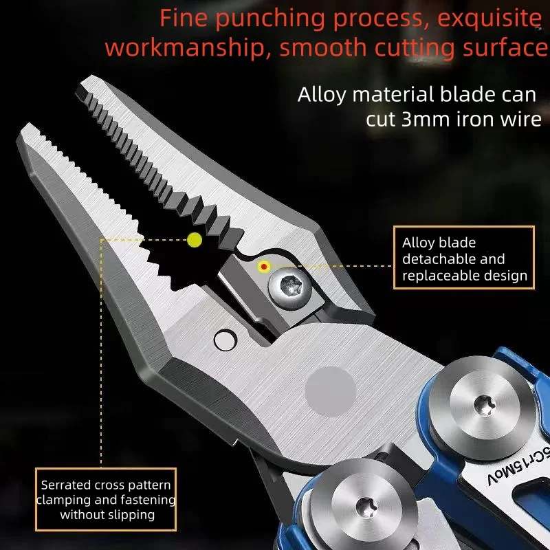 Multi functional pliers stainless steel outdoor emergency knife shear combination pointed nose pliers camping hiking pliers