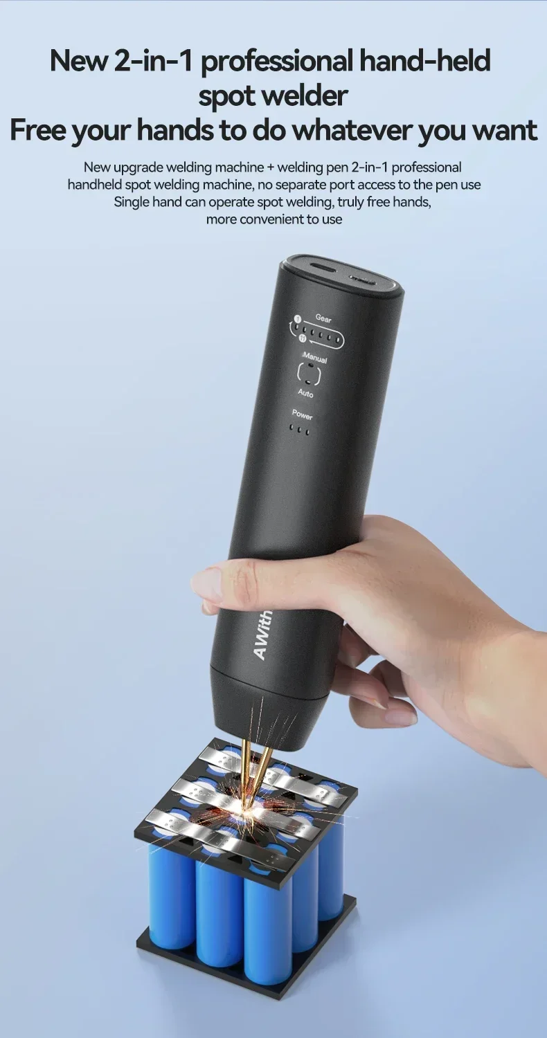 Awithz 11Gears Spot Welder Adjustable Portable Handheld Digital Display Mini Spot Welding Machine Auto Trigger For 18650 Battery