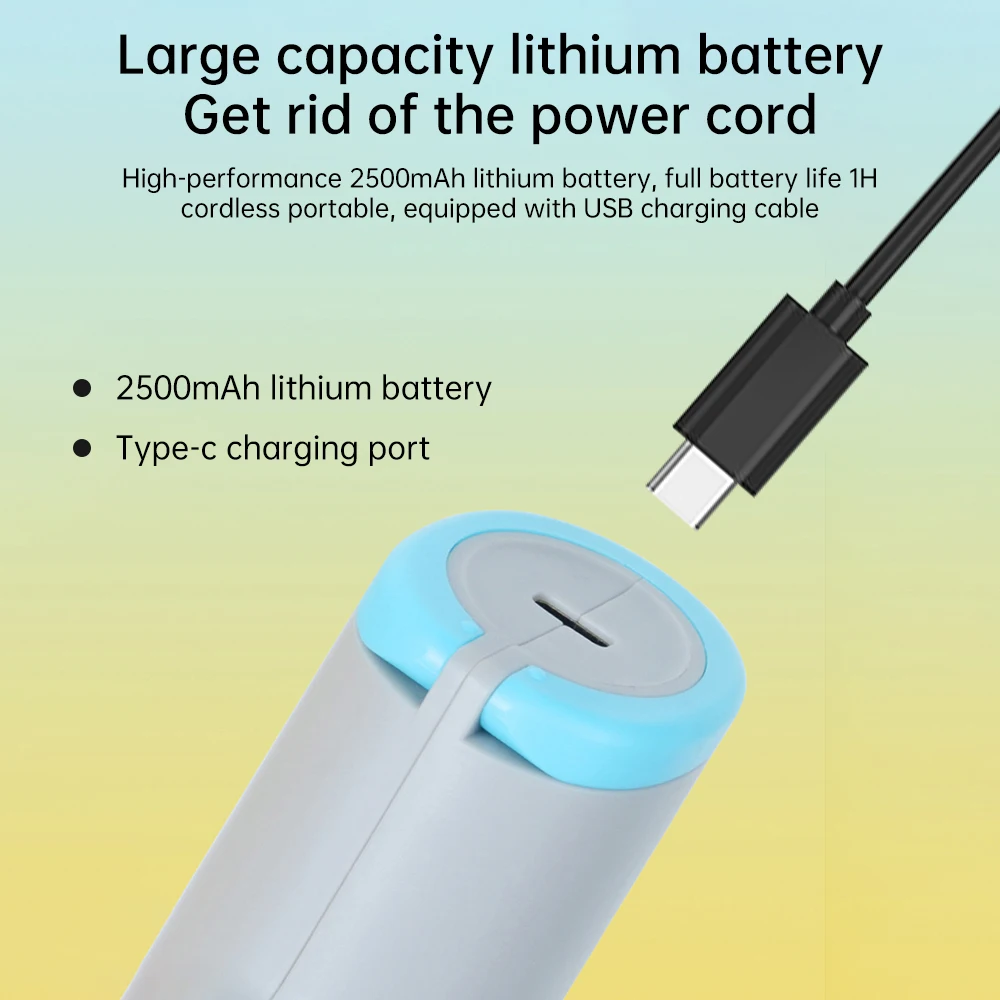 4. High-capacity lithium battery: 2500mAh battery, battery life of 1 hour, USB-C charging, get rid of the power cord bondage.