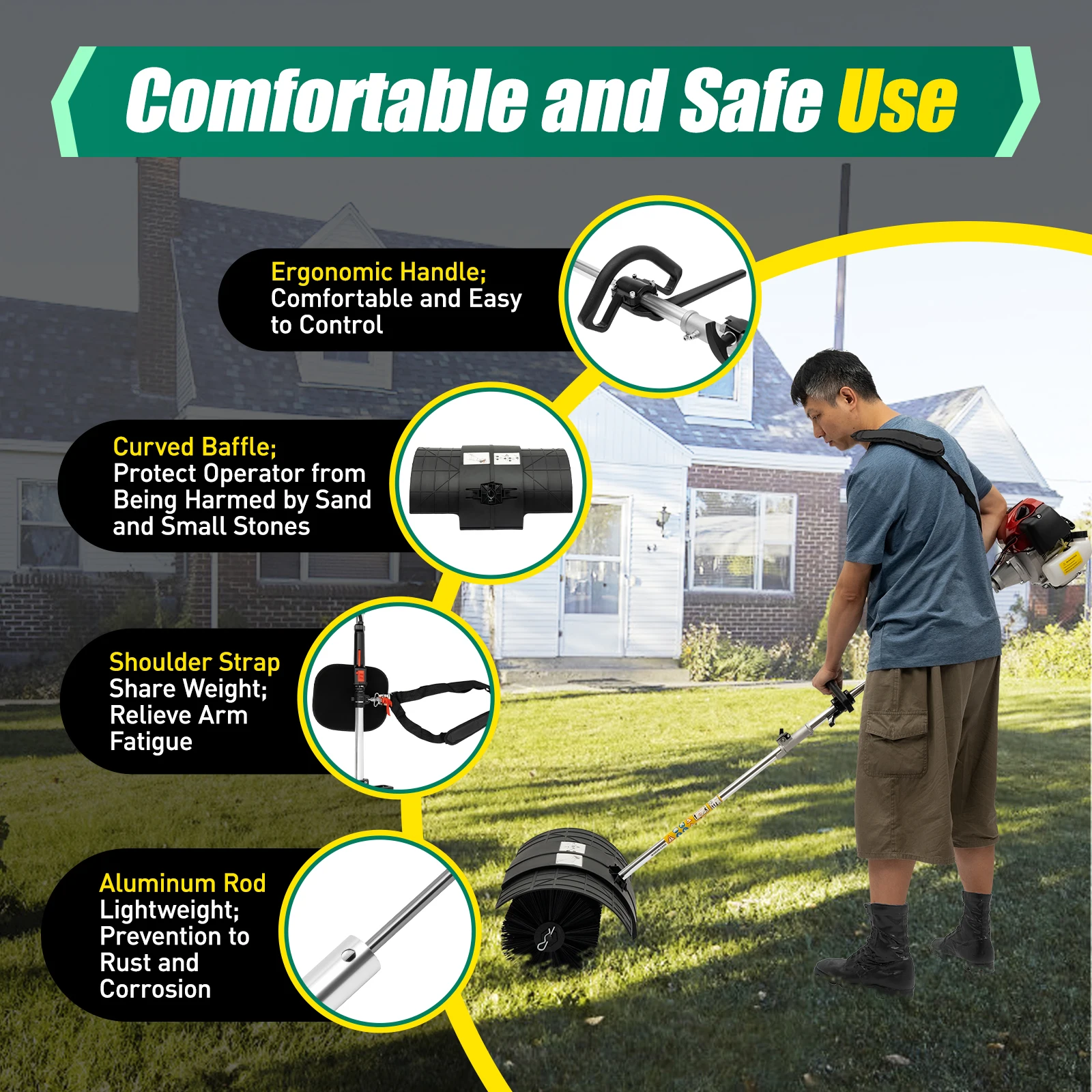 User-friendly Design: The large fuel tank, which holds 0.26 gallons of fuel, provides great convenience for extended use without frequent refueling. Only press the throttle safety lock and throttle at the same time to start sweeping to avoid inadvertent touch and ensure the safety of use.