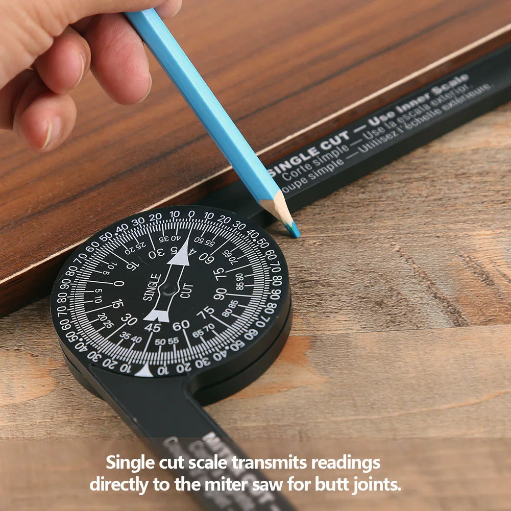 1. Precision Etching: This miter saw protractor features dual scales, ensuring high accuracy for intricate projects. The clear, permanent markings facilitate precise measurements for both professional and DIY tasks.