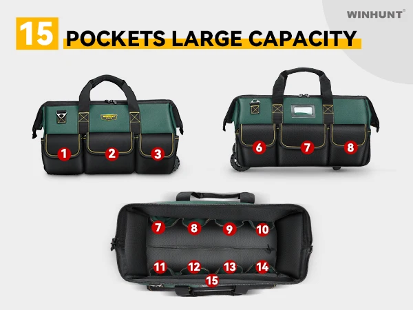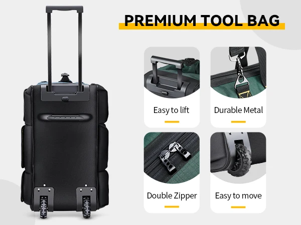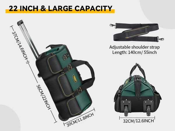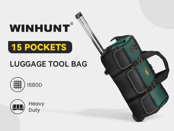WINNHUNT 22inch Rolling Tool Bag, with Adjustable Telescopic Handle Tool Bag with Wheels 15 Pockets Green/Black, Suitable for To