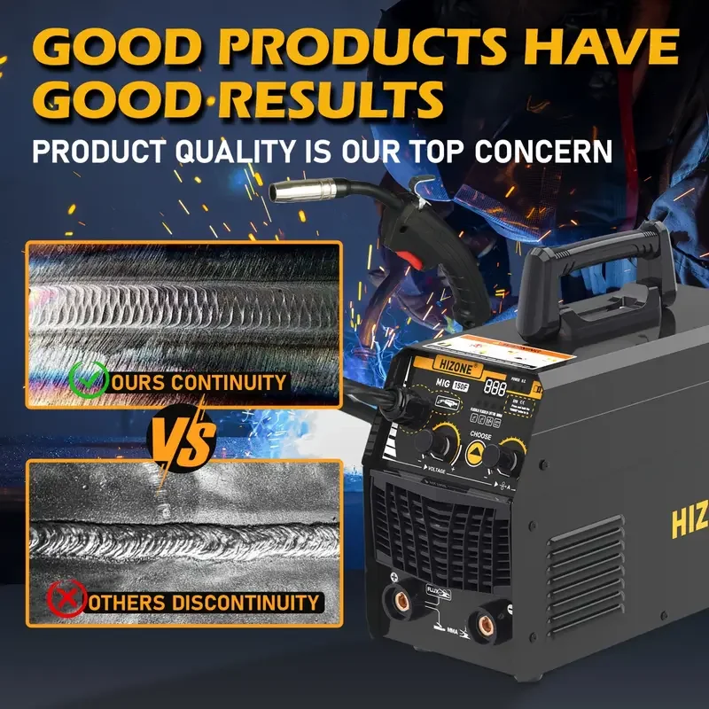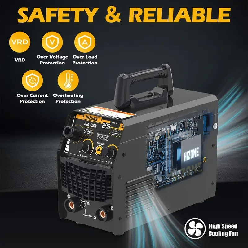 HIZONE Mig Welding Machine Semi-Automatic 4 in 1 Inverter Tig Argon Arc MIG Gas-Less Soldering Welder 110V 150A
