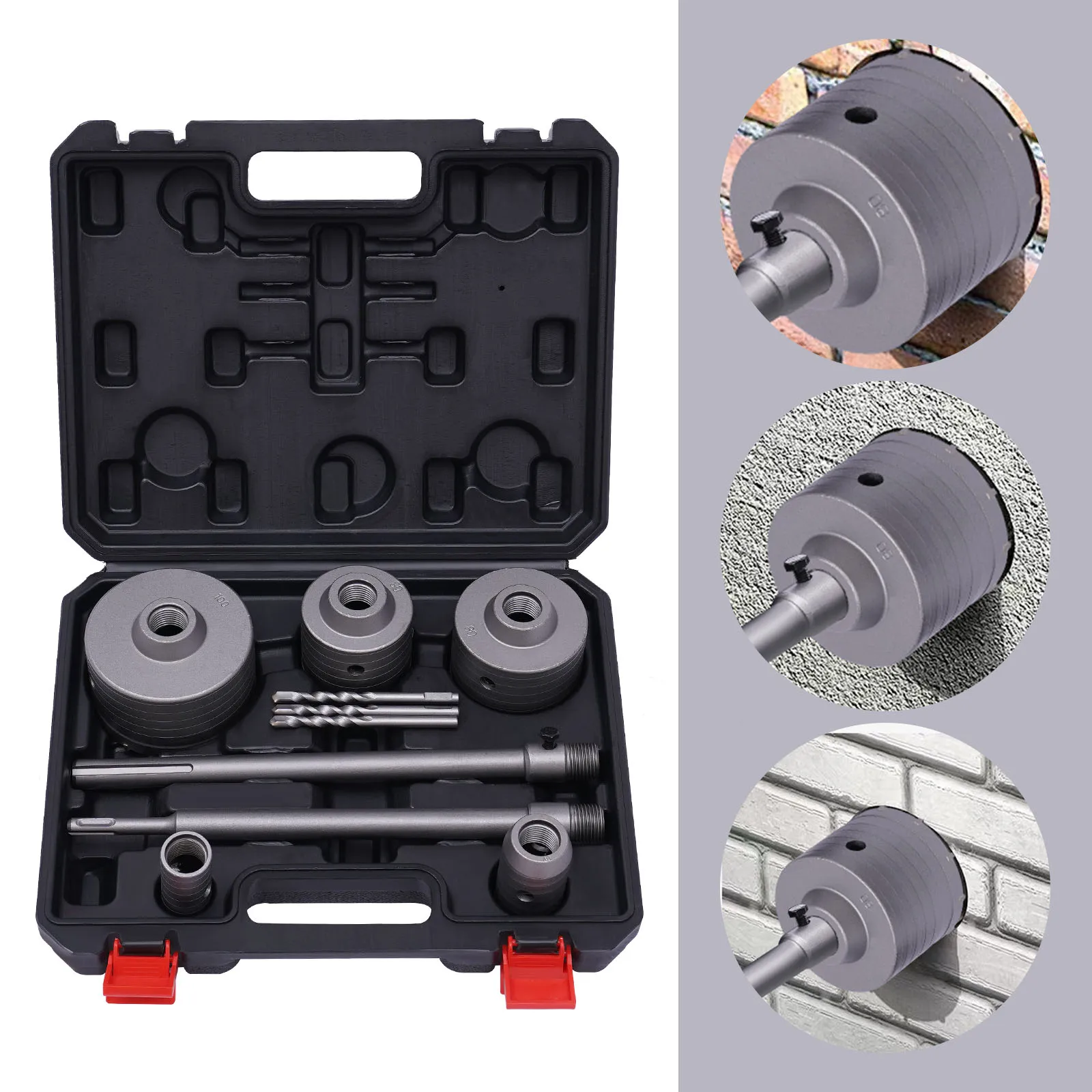 9Pcs Hole Saw Kit Electric Hammer Accessories 30/40/68/80/100mm with Plastic Toolbox for Drilling Work