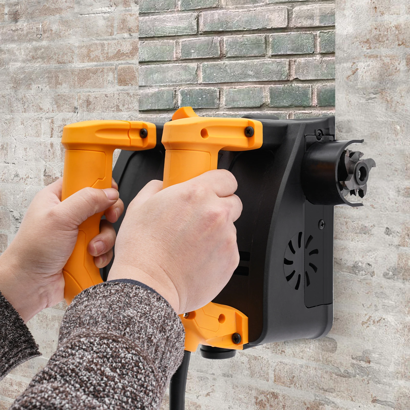 Our electric wall planer epitomizes advanced engineering and innovation, tailored for professionals in construction and renovation. This powerhouse tool combines powerful motor (1200W) with precise design, excelling in demanding chiseling and planing tasks. Its ergonomic non-slip dual grips ensure fatigue-free extended use. Enhanced with a durable blade system that retains sharpness, it guarantees clean cuts and smooth finishes across various materials, including cement, paint, and putty.