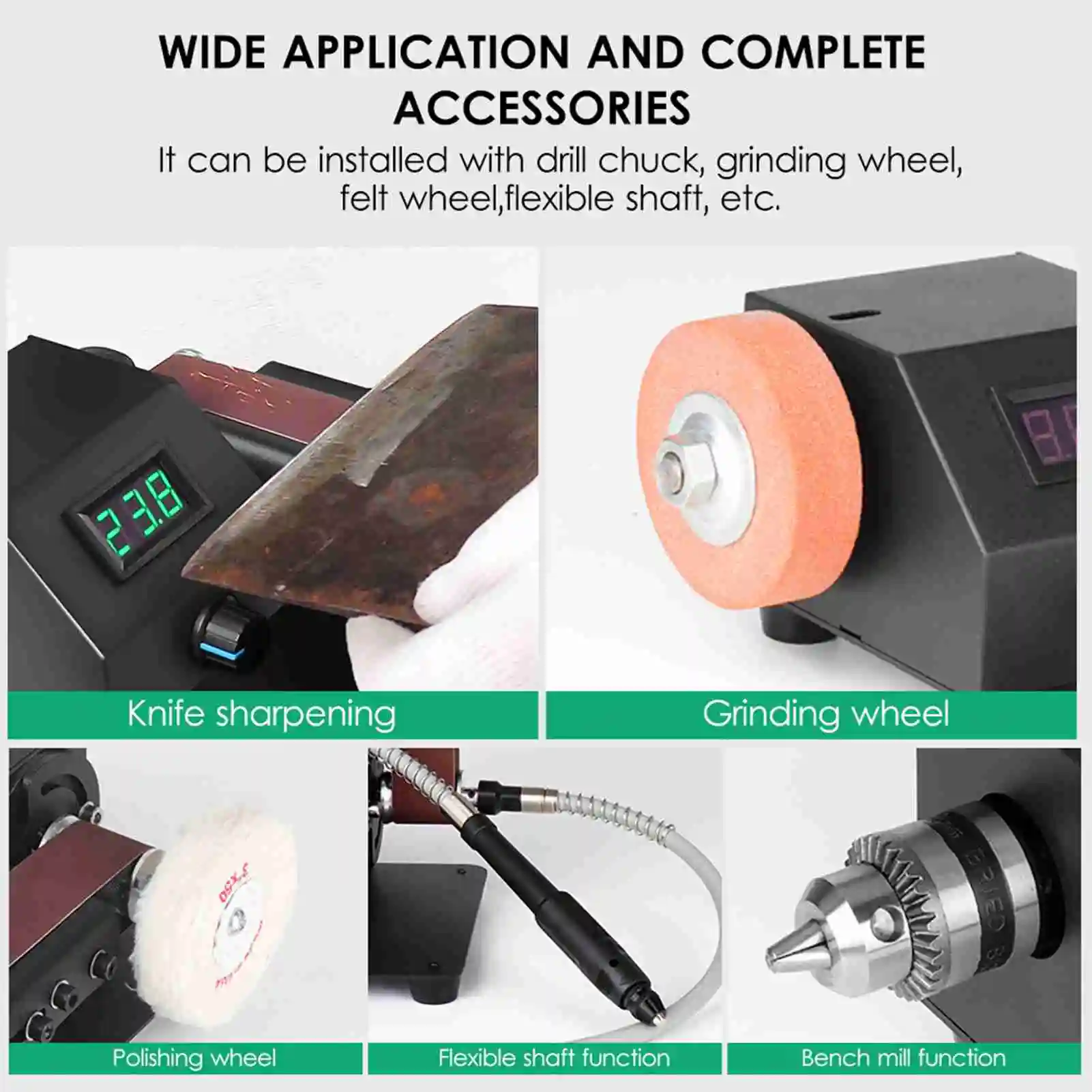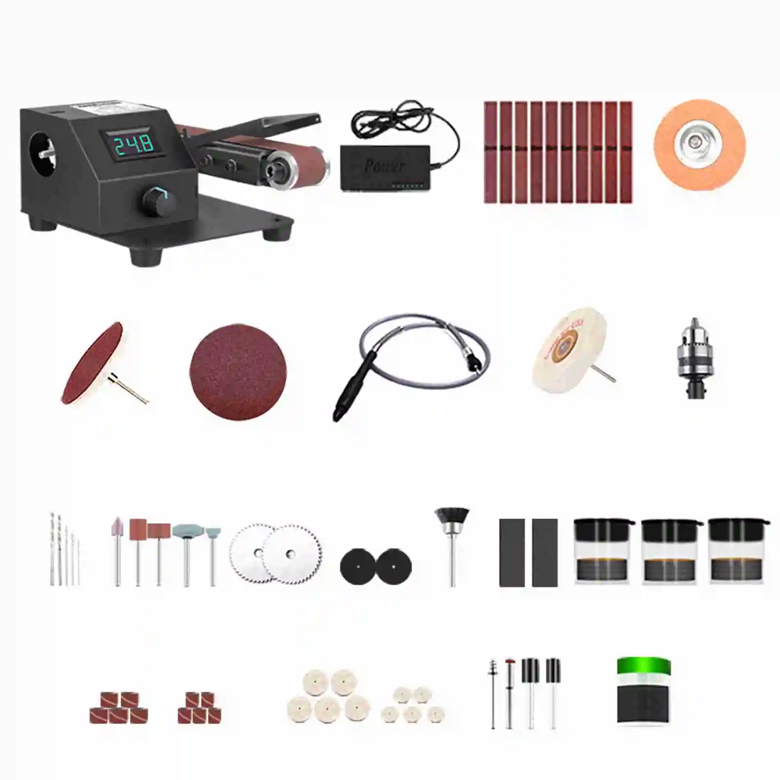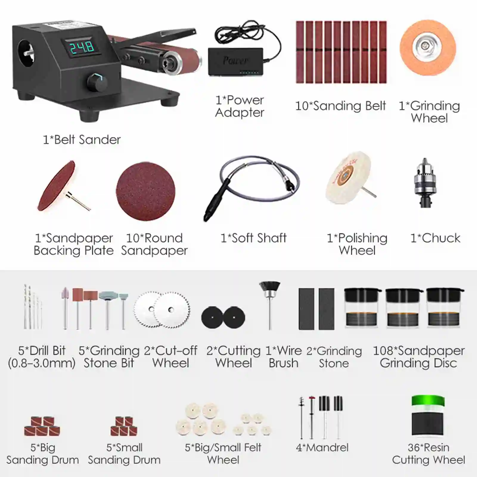 350W Vertical & Horizontal Mini Belt Sander Electric Sanding Polishing Grinding Machine Grinding Sander Grinder Small Sand-belt Machine Stepless Speed Regulation with 10 Sanding Belts for Polishing Wo
