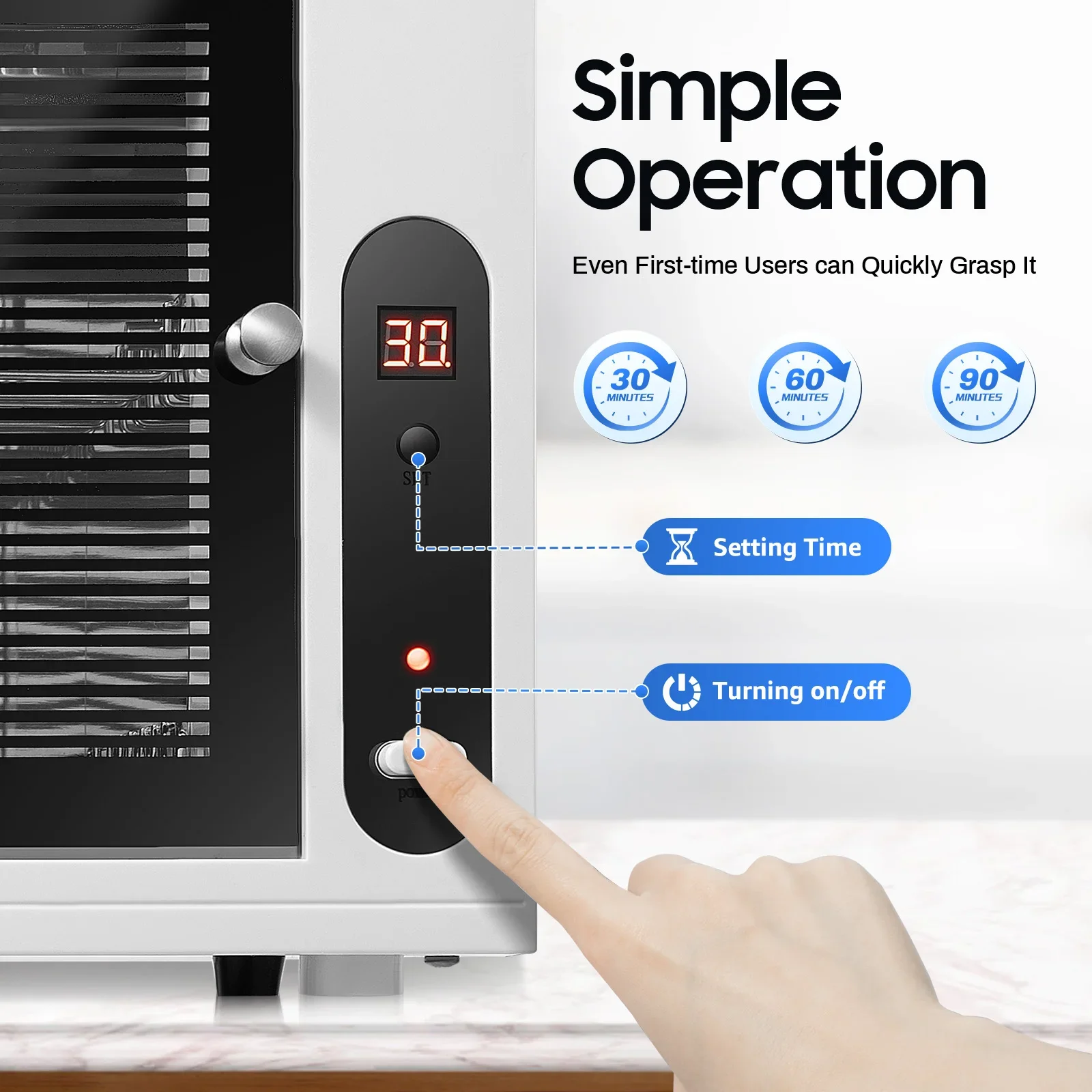 UV Lamp: The UV lamp can quickly and effectively sterilize many tools and kill most micro-organisms, leaving you extremely clean and safe items.