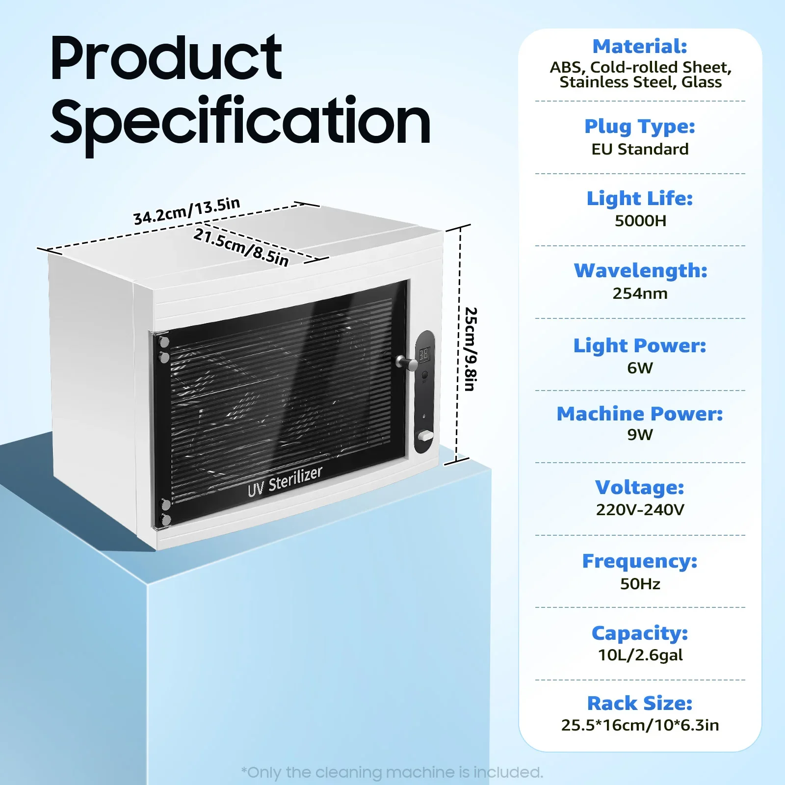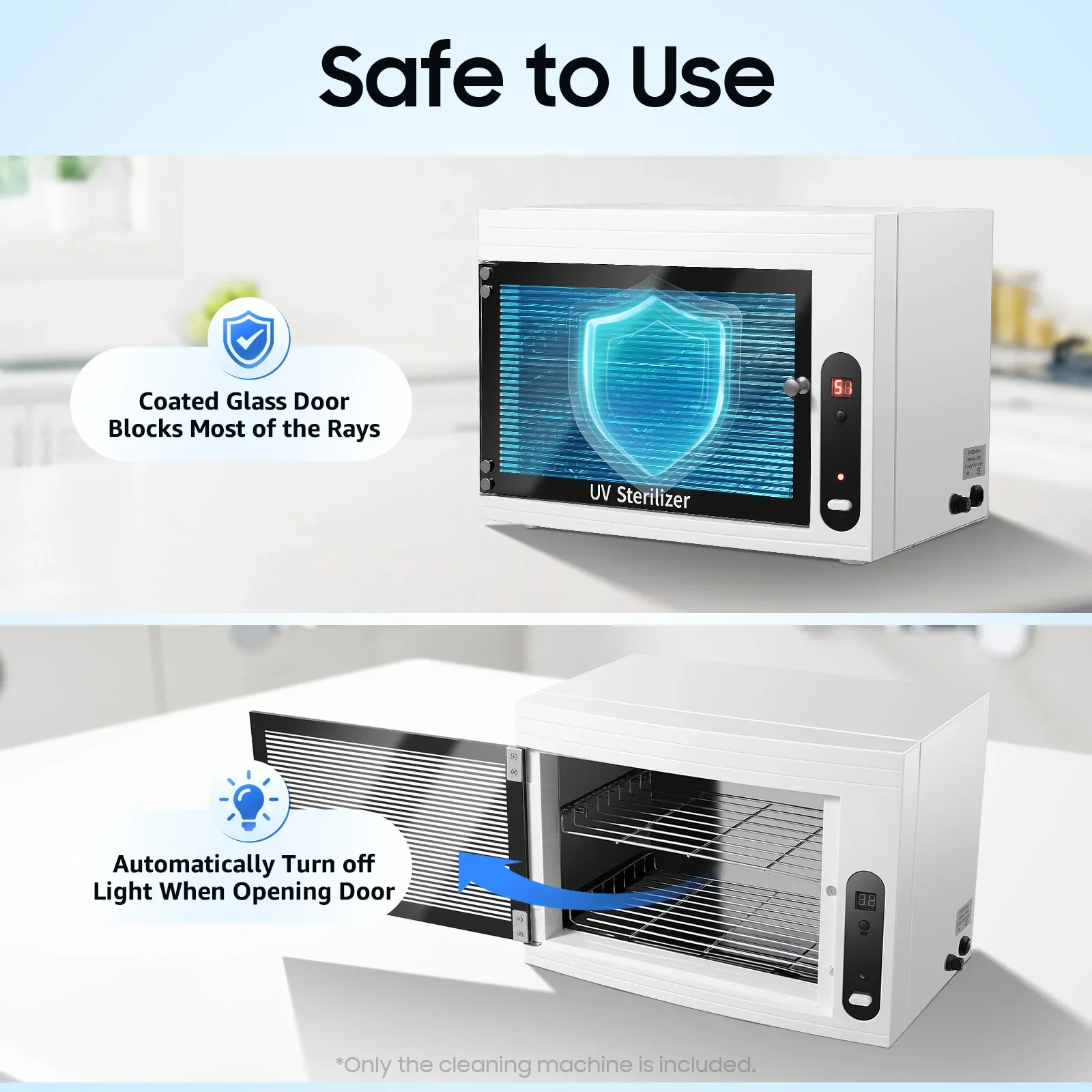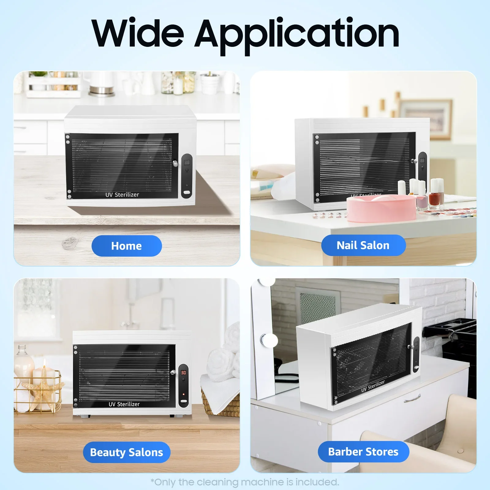Multi-purpose: This UV sanitize machine is perfect for sterilization and cleaning tools. It is suitable for home disinfection of infant bottles, toys, dinnerware, towels and phones, as well as professional disinfection of manicure instruments, tattoo tools, and salon equipment.