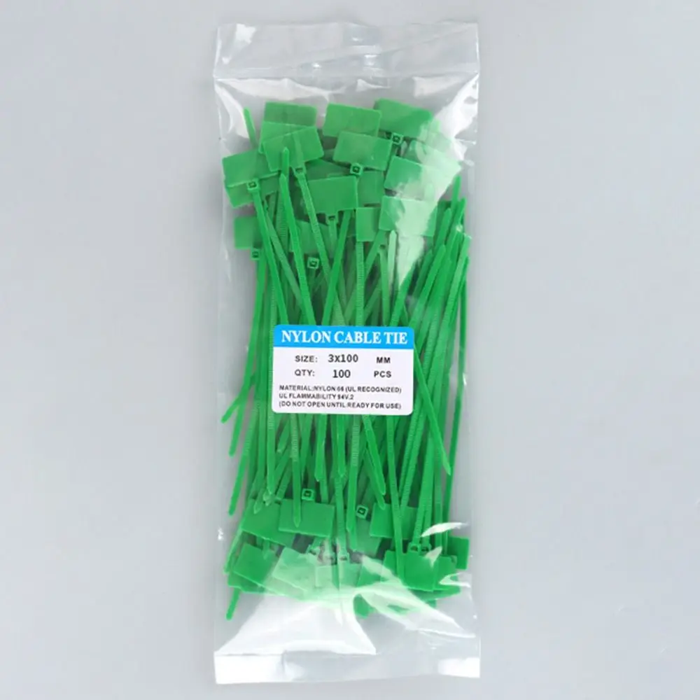 100pcs Plastic Loop Ties Markers Cable Tag Self-locking Zip Ties Easy Mark Nylon Cable Ties Tag Labels