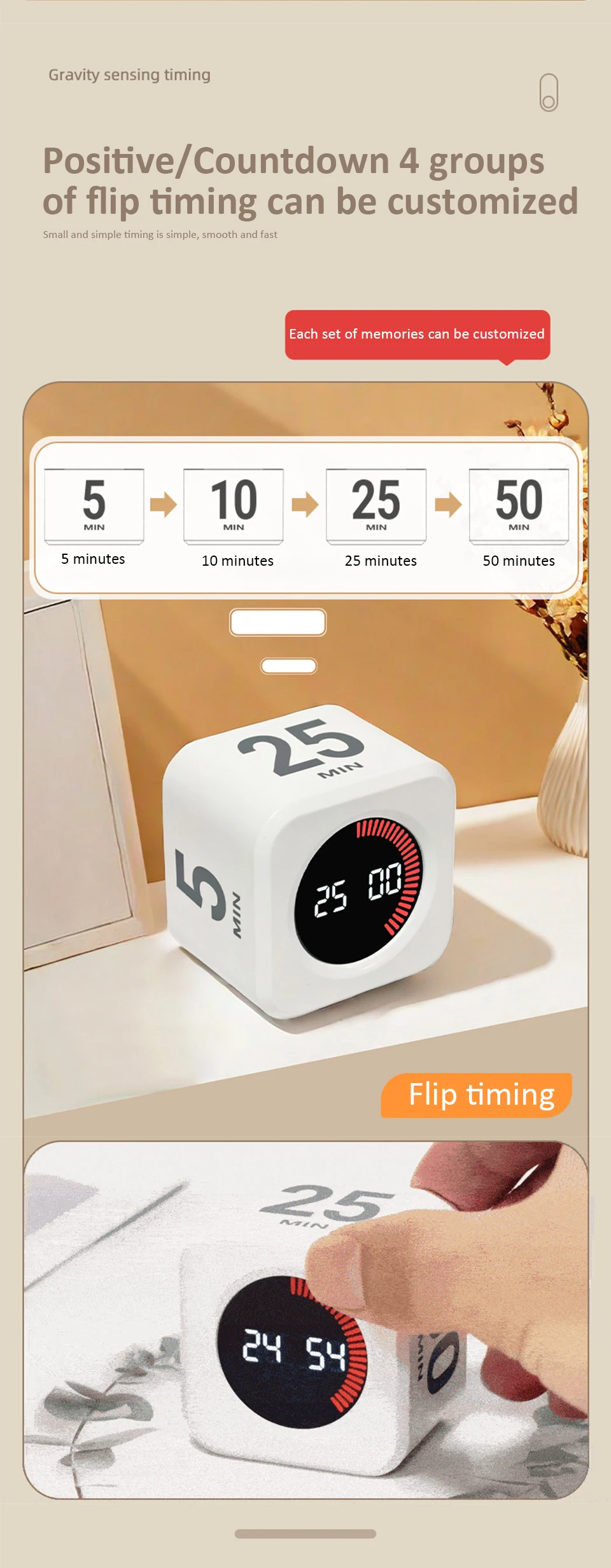 1. Positive/Countdown 4 groups of flip timing can be customized