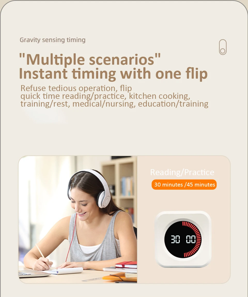 7. "Multiple scenarios". Instant timing with one flip. Refuse tedious operation, flip quick time reading/practice, kitchen cooking, training/rest, medical/nursing, education/training.