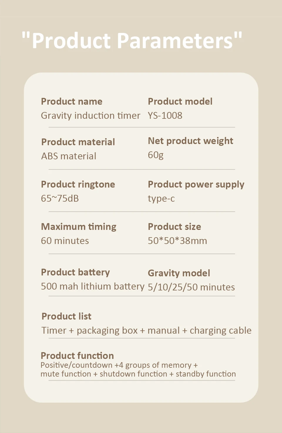 Product name: Gravity induction timer
