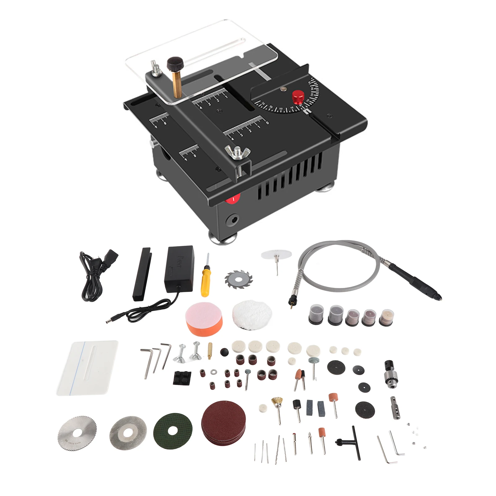100W Multi Functional Table Saw Mini Desktop Electric Saw Cutter Speed and Angle Adjustable Liftable Blade 16MM Cutting Depth with Blade Flexible Shaft and More Accessories for Wood Plastic Acrylic