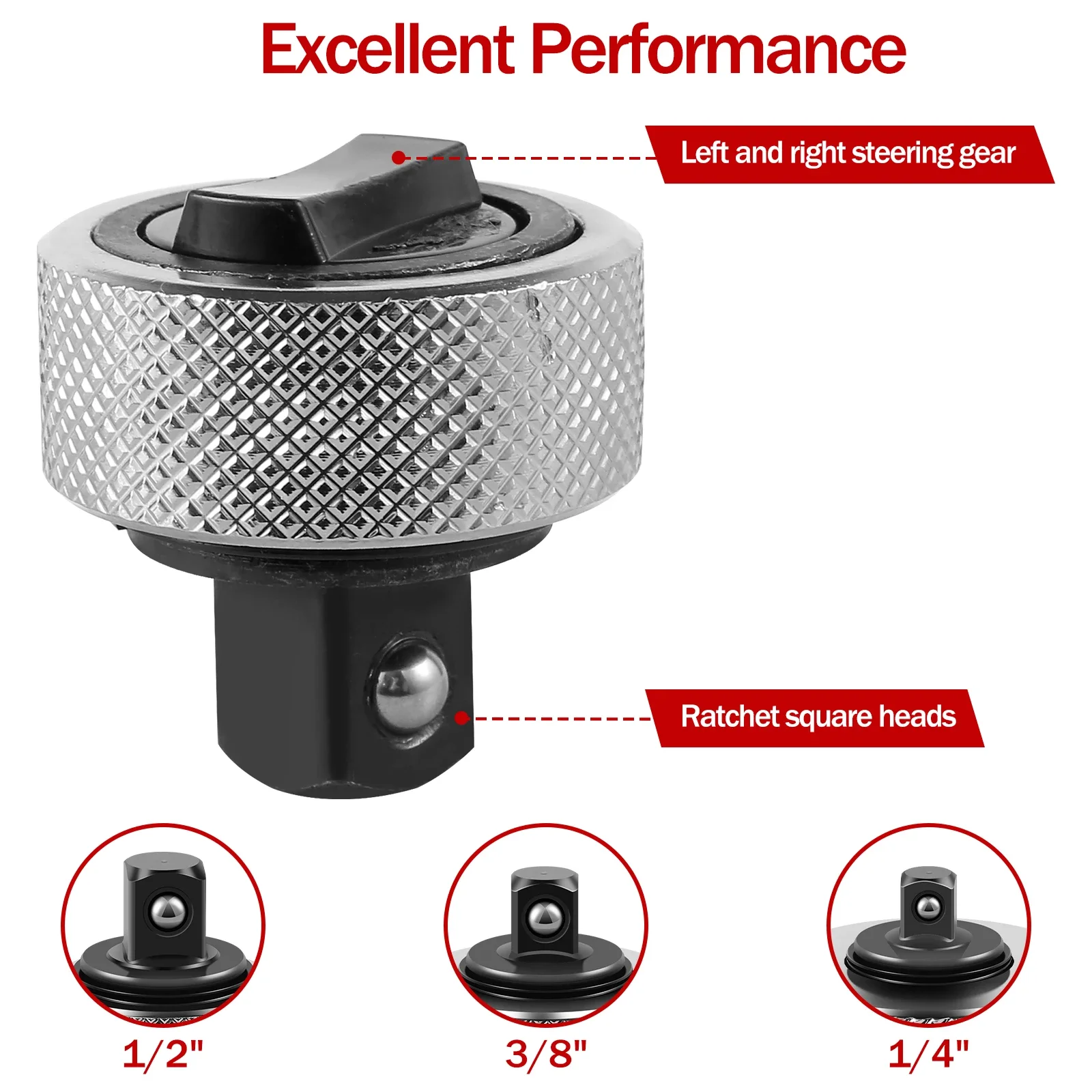 Usage: It can be used with 1/2inch socket and screwdriver head set, and is used for screws that cannot be removed and screwed in the narrow space of the car. 1/2 has 45 teeth, 3/8 has 39 teeth, and 1/4 has 43 teeth.