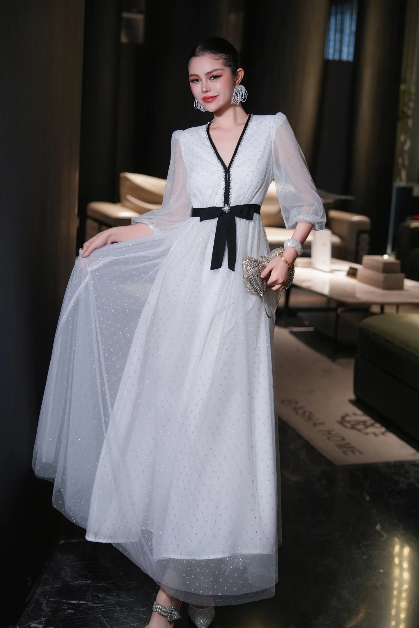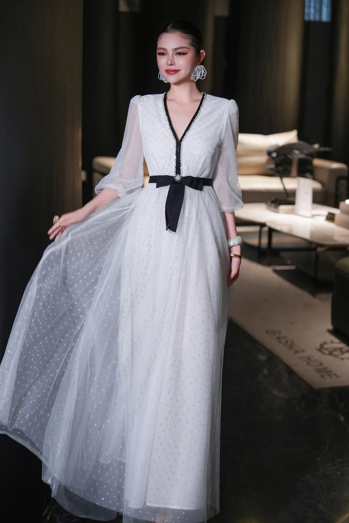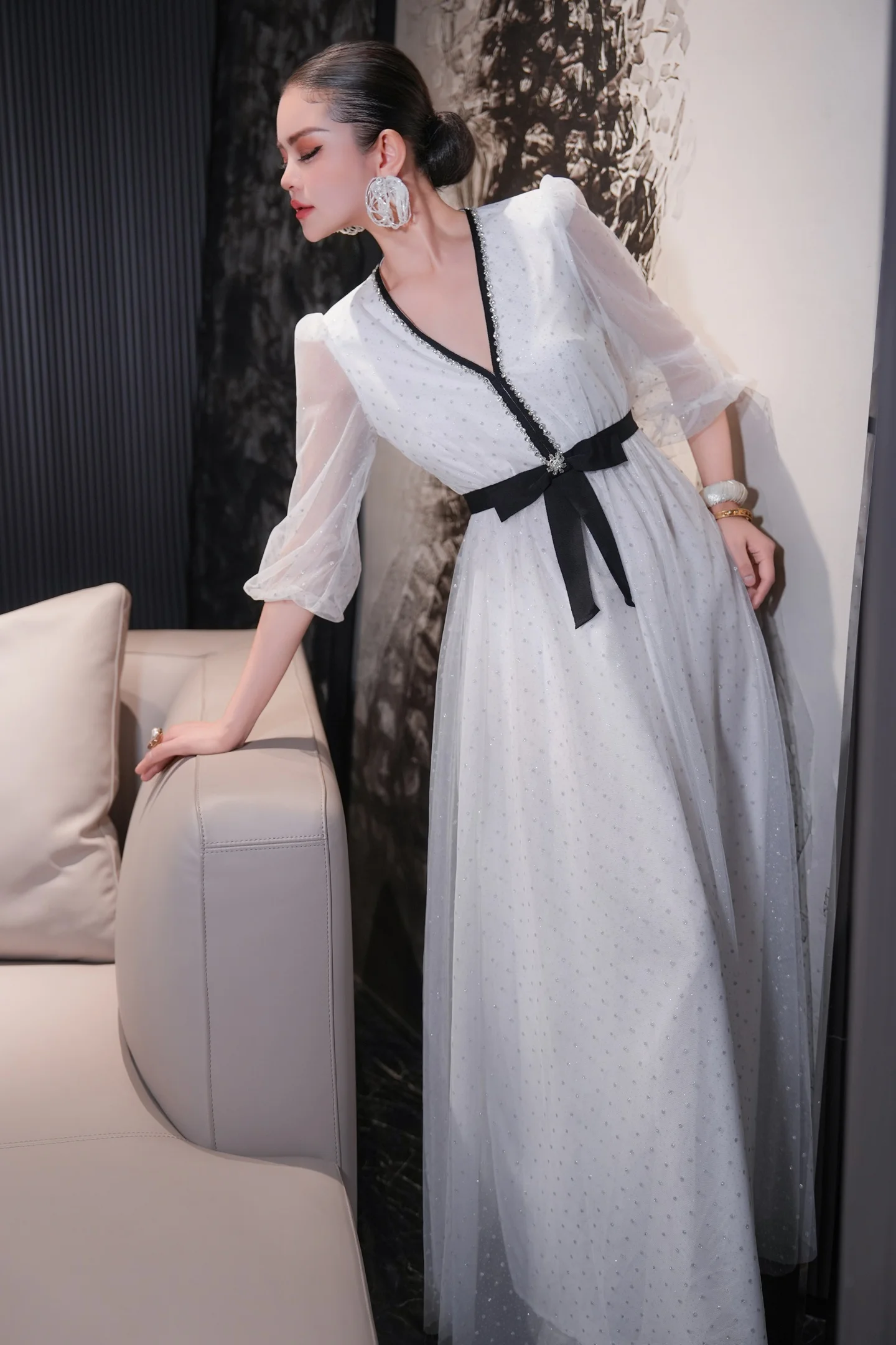 Whether it's a summer party or a formal event, this white maxi dress is versatile enough to suit any occasion.