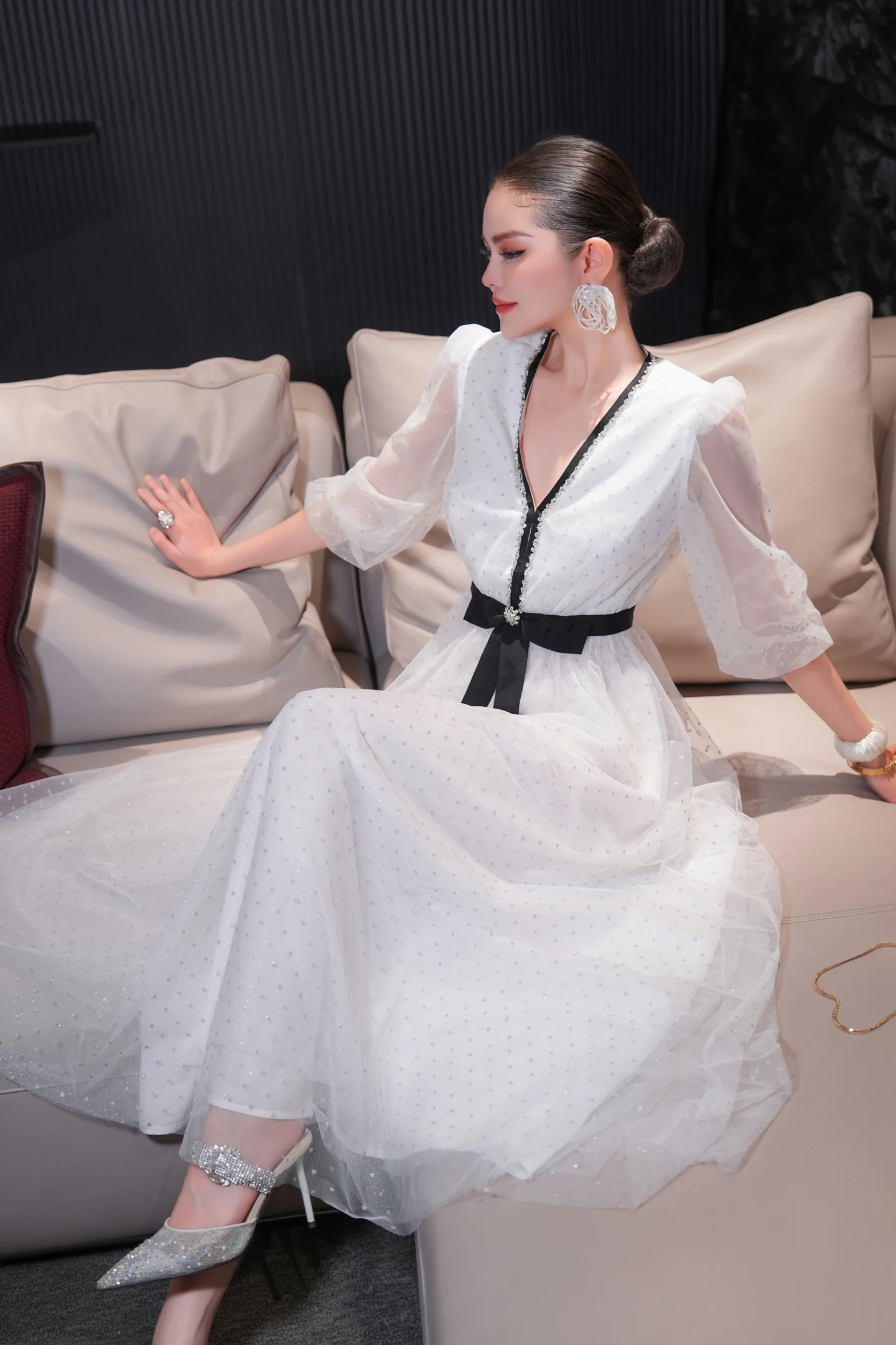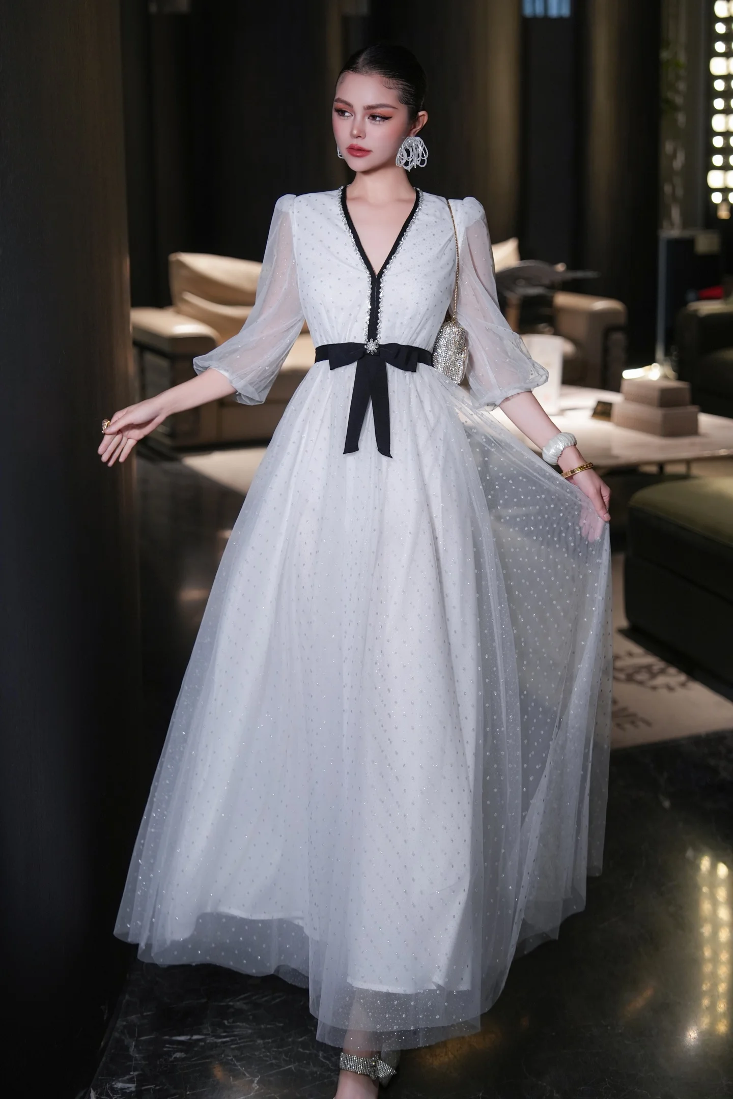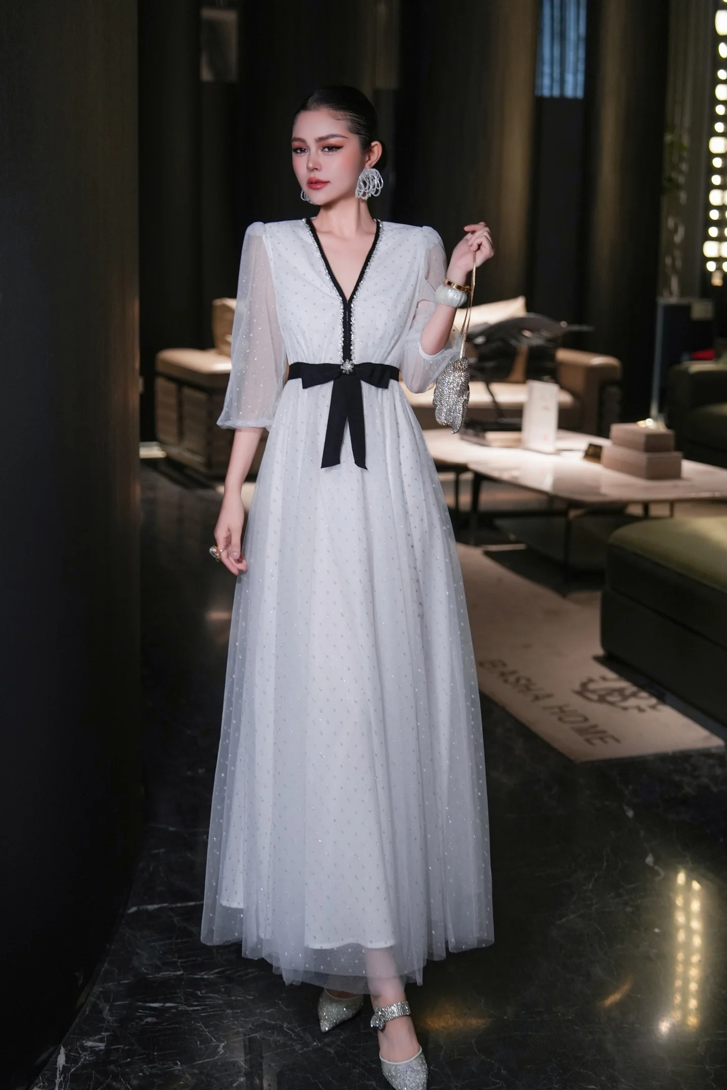 Whether it's a summer party or a formal event, this white maxi dress is versatile enough to suit any occasion.