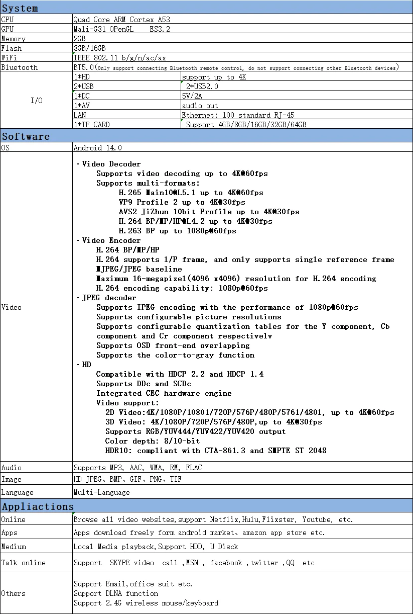 H96 Max H313*1HD cable *1Remote *1User manual *1Package box *1Power adapter *1