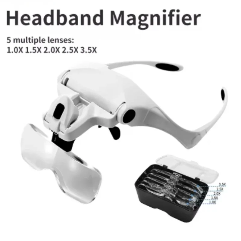 1.0X To 3.5X Hands Free Headband Magnifier LED Head Magnifier with 2 LED Lights for Watch Repair Reading Magnifying Glasses