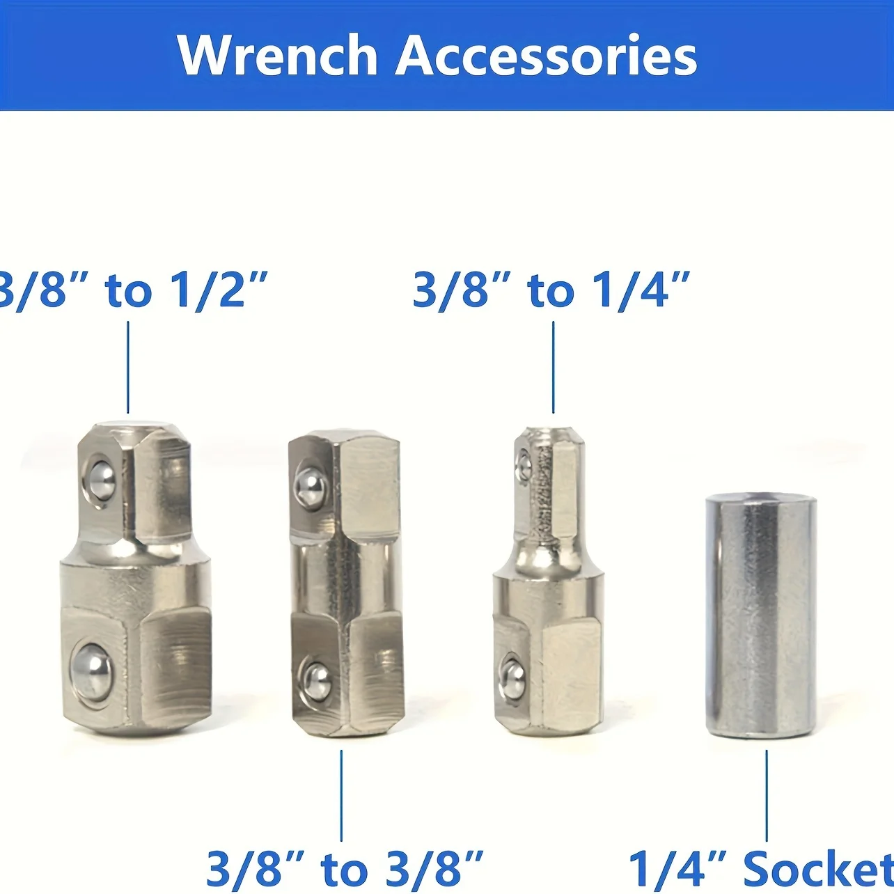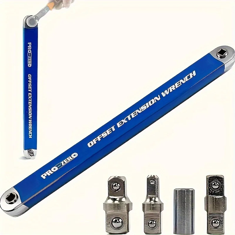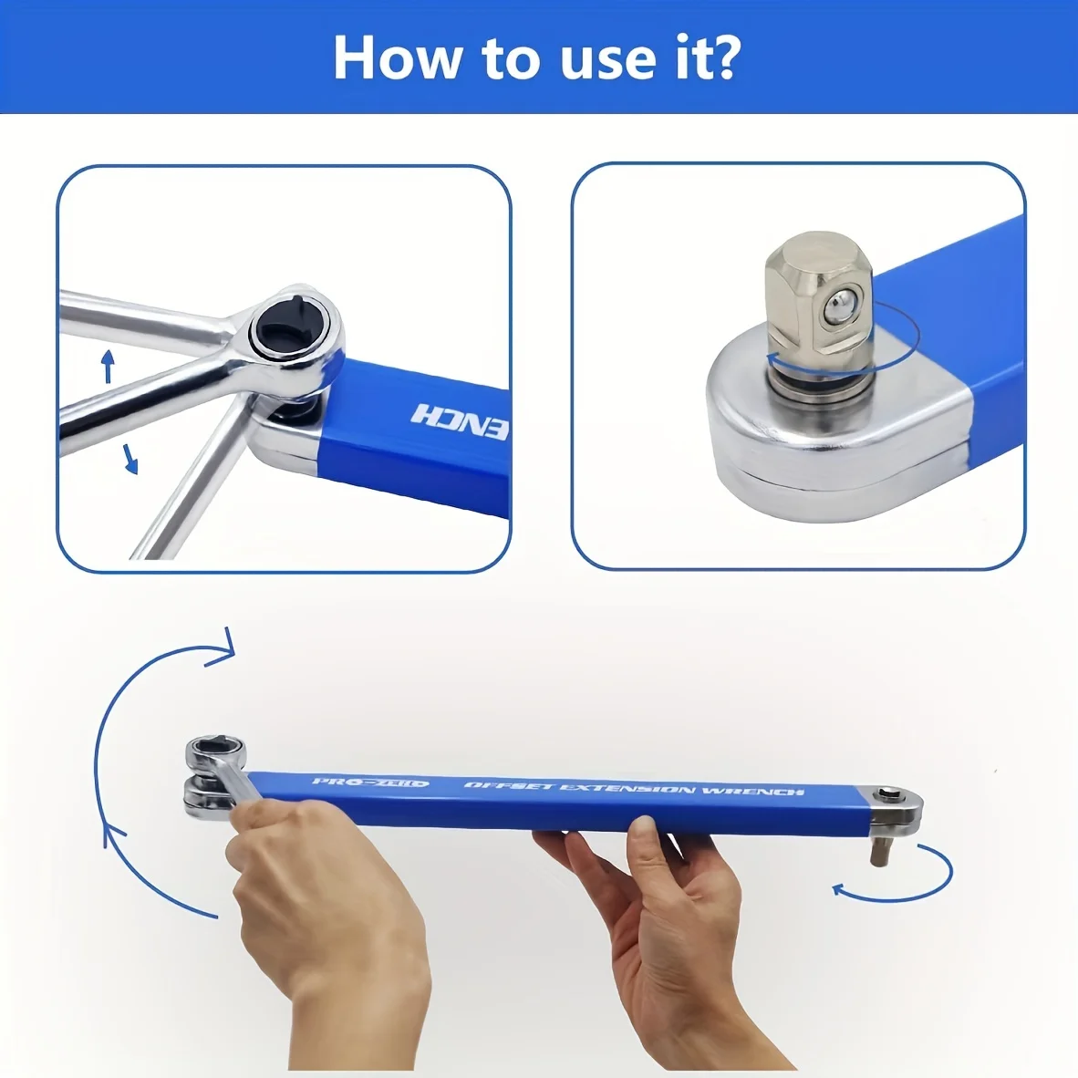 Impact Resistant Extension Wrench Set, Multi-Purpose Ratchet Wrench w/ 12, 14, 38mm Square Drive Adapters for Tight Spaces