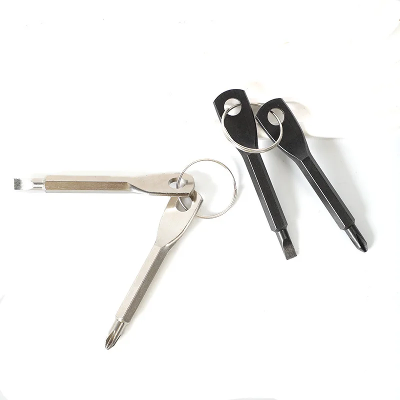 Outdoor EDC flathead cross combination screwdriver, outdoor multifunctional tool with keychain hanging buckle