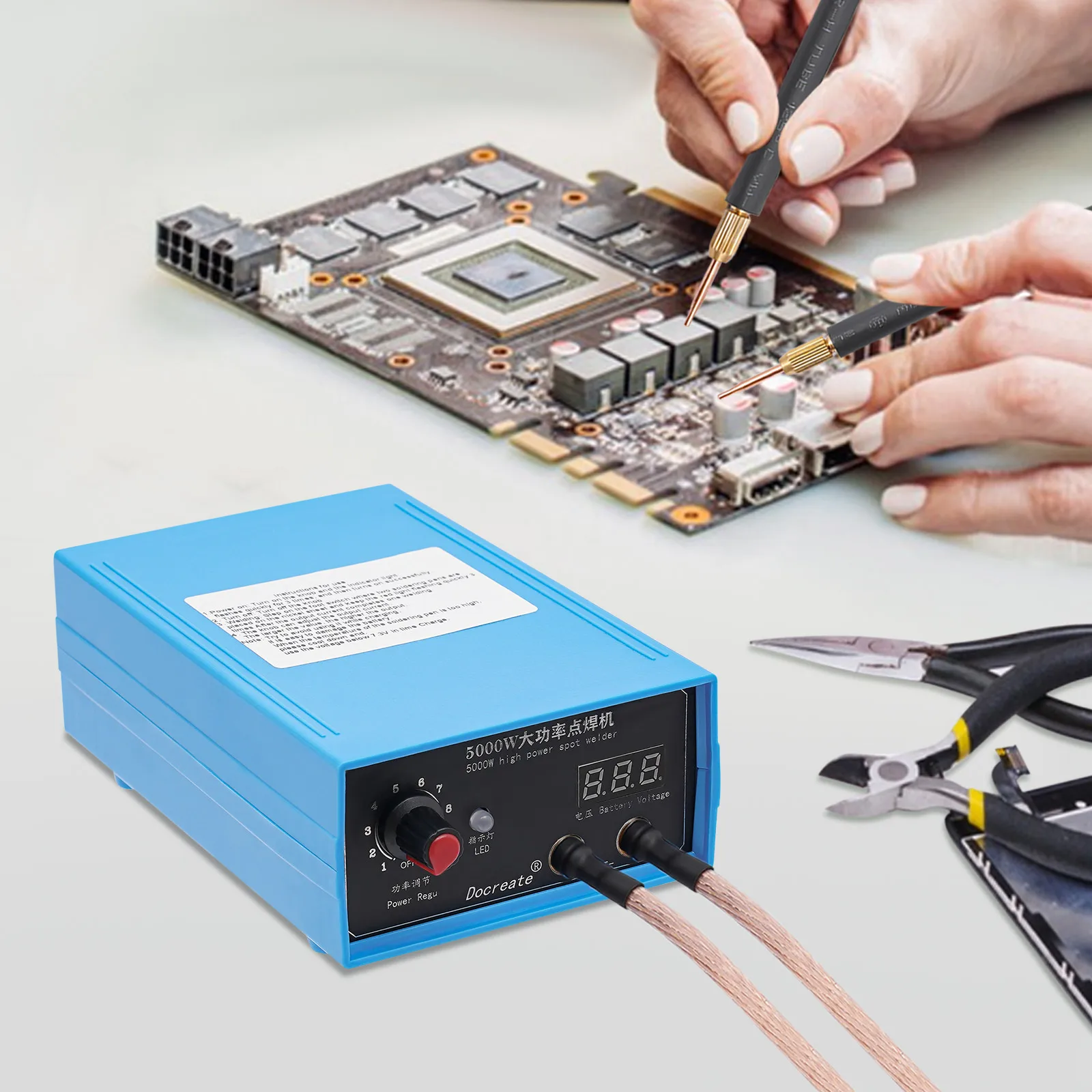 High Efficiency: You can achieve a solid spot weld in a shorter time because of the 5000W power, which is very efficient. In addition, the welding needle has good conductivity and low contact resistance, so it can achieve solid spot welding.
