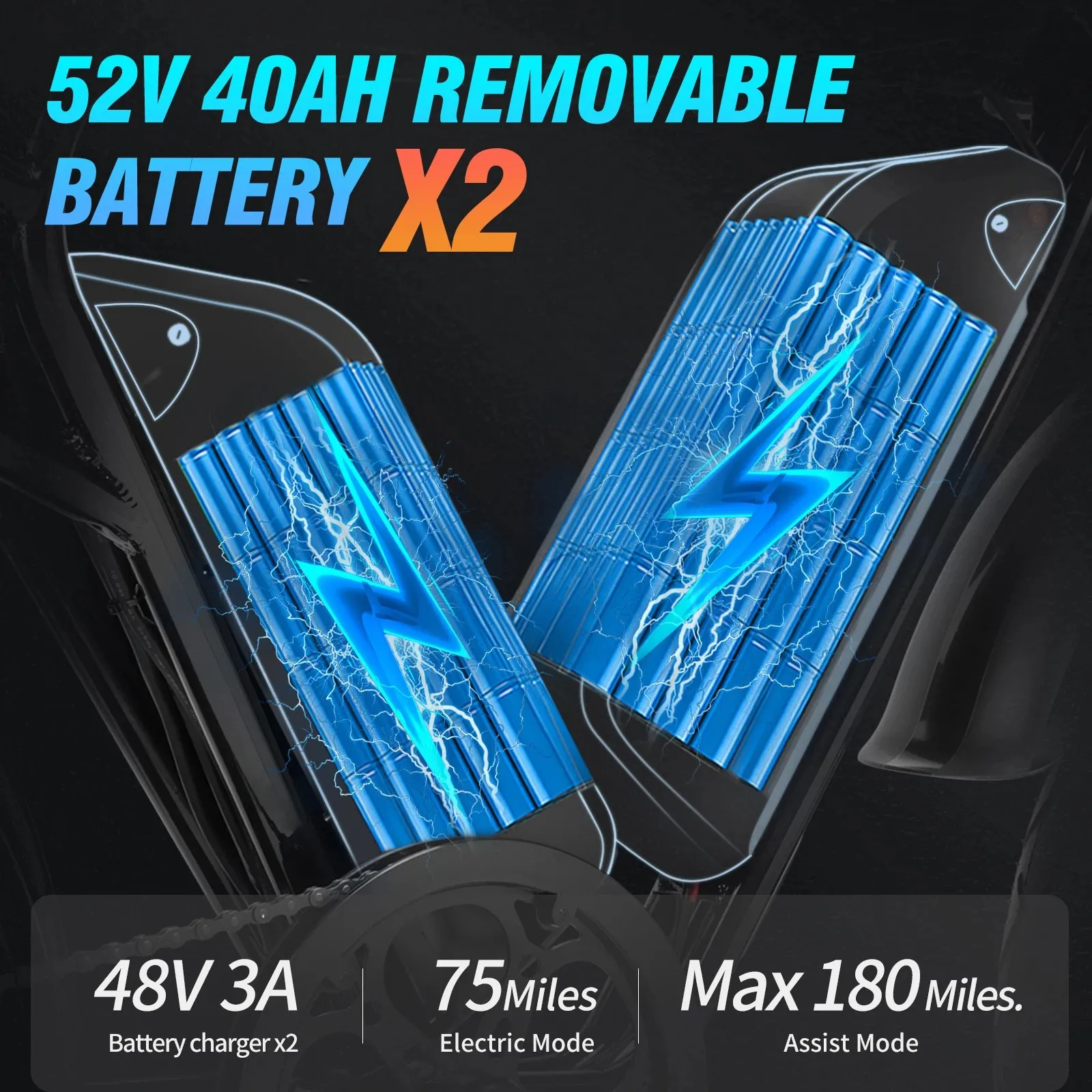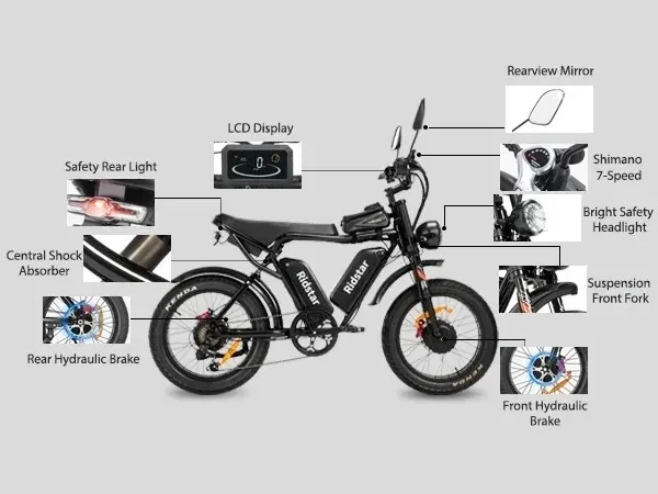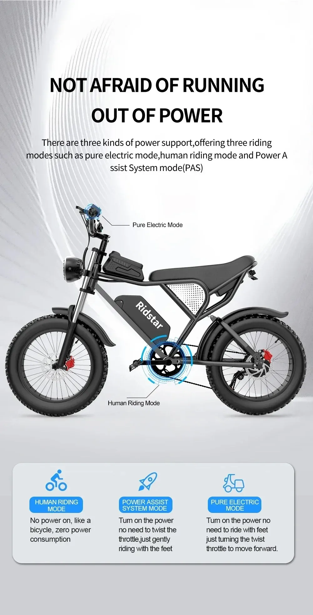 Ridstar Q20 E Bike2000W Motor 52V40AH Dual Battery Hydraulic Braking Electric Bicycle 20-Inch Fat Tire All Terrain Electric Bike