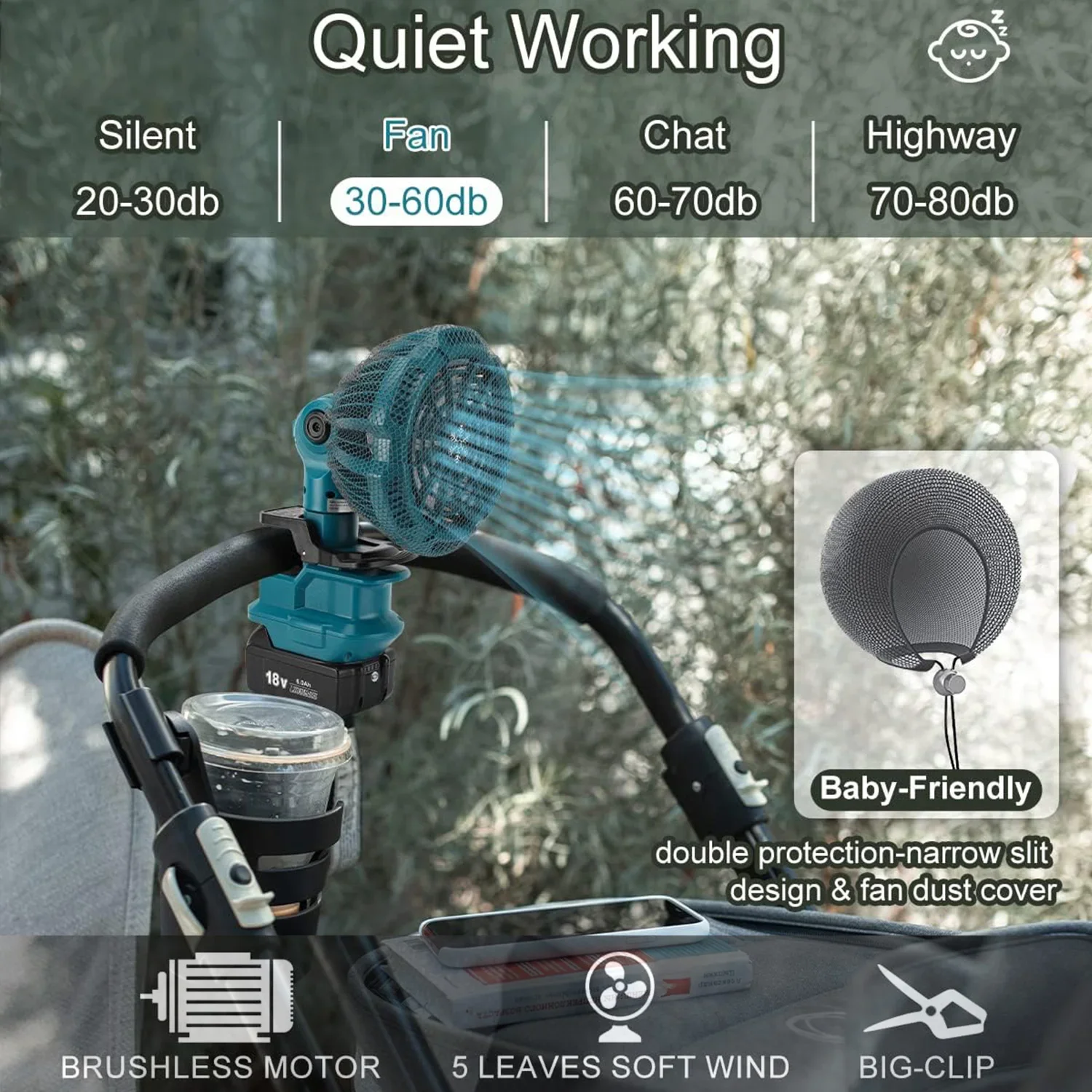Portable Clip On Fan For 18V Lithium Battery Battery Powered Stroller Fan With 3 Energy Efficient Speed For Outdoor