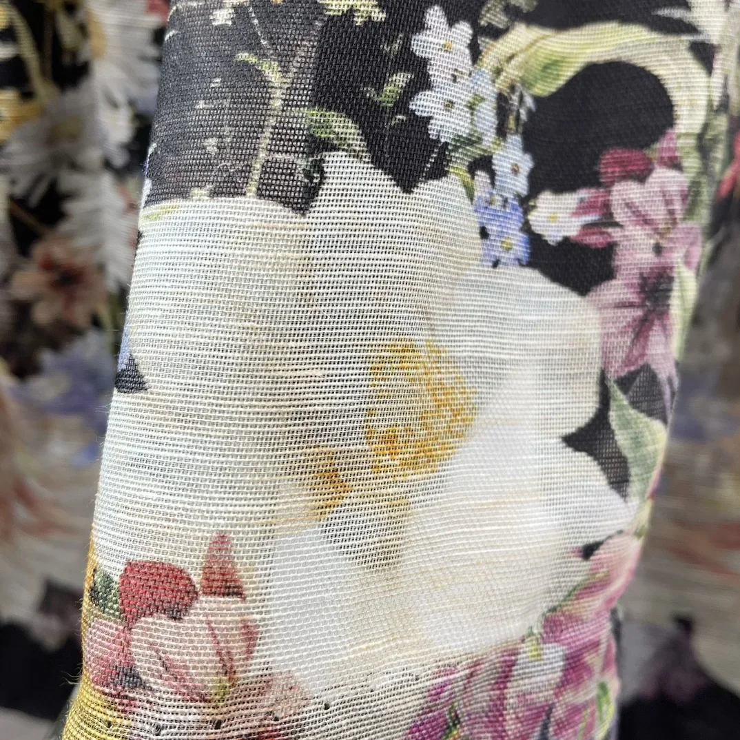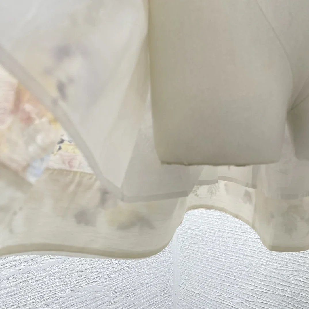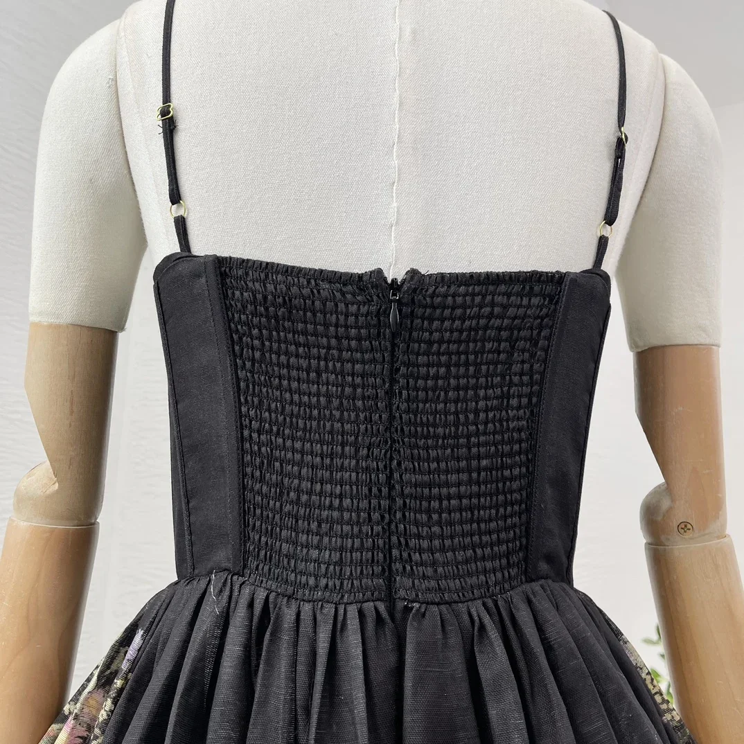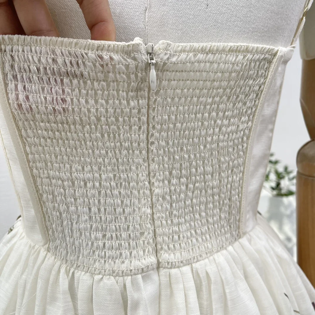 Re-tro Floral Printing White 2024 Women Silk Linen Sleeveless Pleats Waist Shirred Summer Tube Black Mini Dress for Holiday