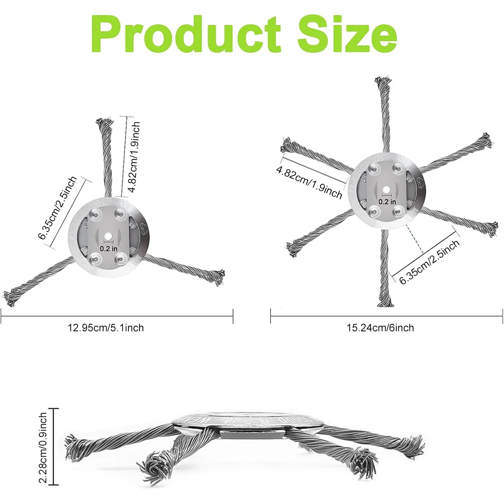 1. Resilient: The steel wire wheel grass trimmer head offers smooth performance and flexible twisted lines, effectively tackling deep-rooted weeds. It operates seamlessly even when encountering stones and hard blocks.