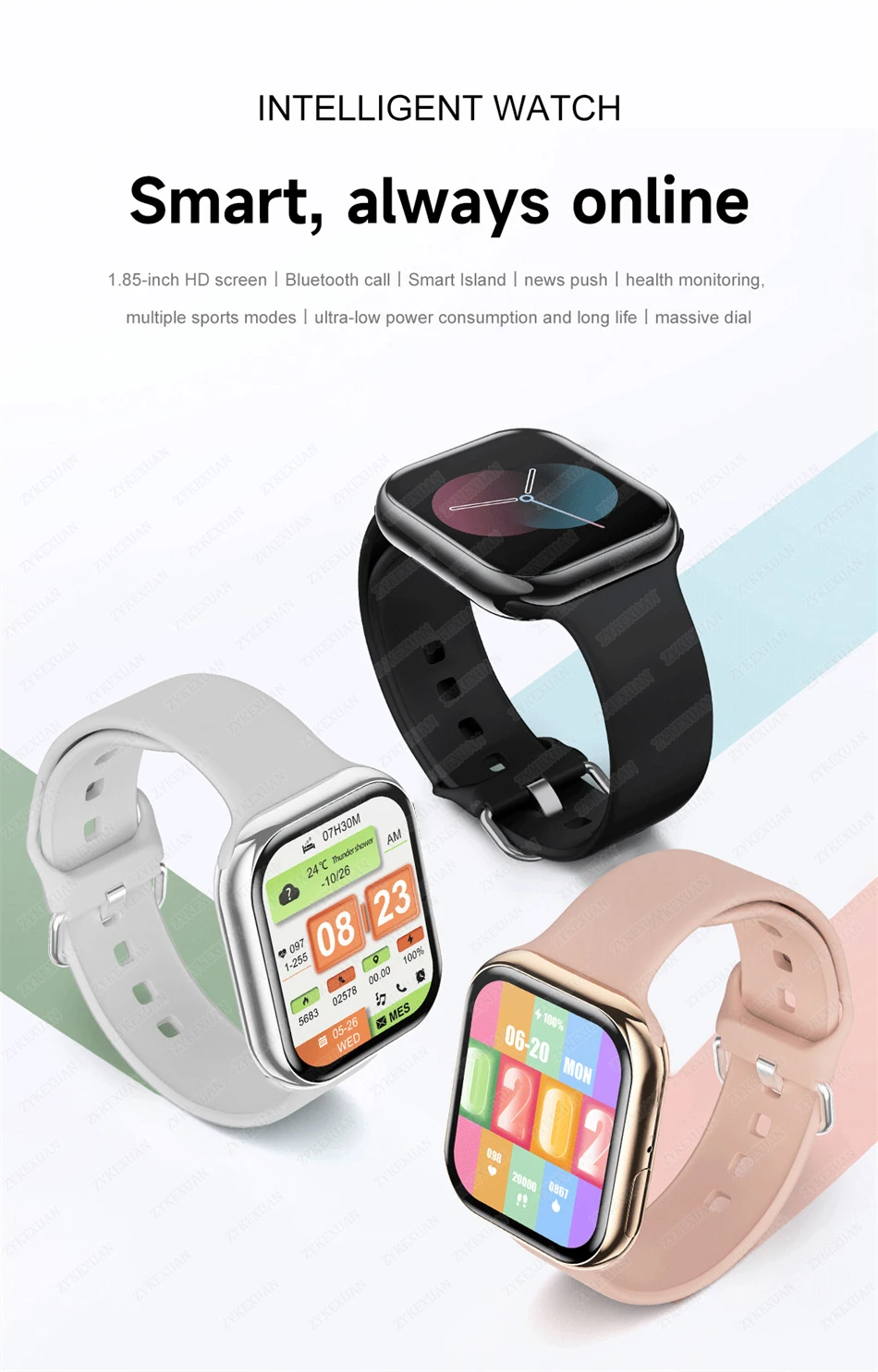 【Creative Dynamic Island Function】The smartwatch has the Dynamic Island function, which can display the music playback status, countdown and charging status. In the future, it will update more function status displays, and you can also feel the charm of Dynamic Island on your wrist.