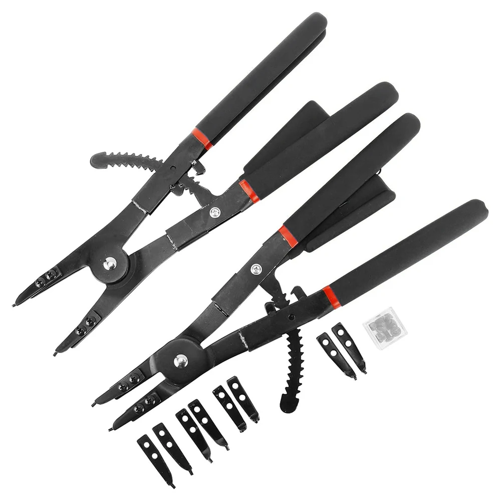 Complete Set:2 PCs 16 x High Dute Snap pliers Set, 1pc Internal snap ring pliers, and 1pc external snap ring pliers, designed for installing or removing snap ring, jesus clips, and Seeger Ings which is a type of fastener that functions like a retaining ring.