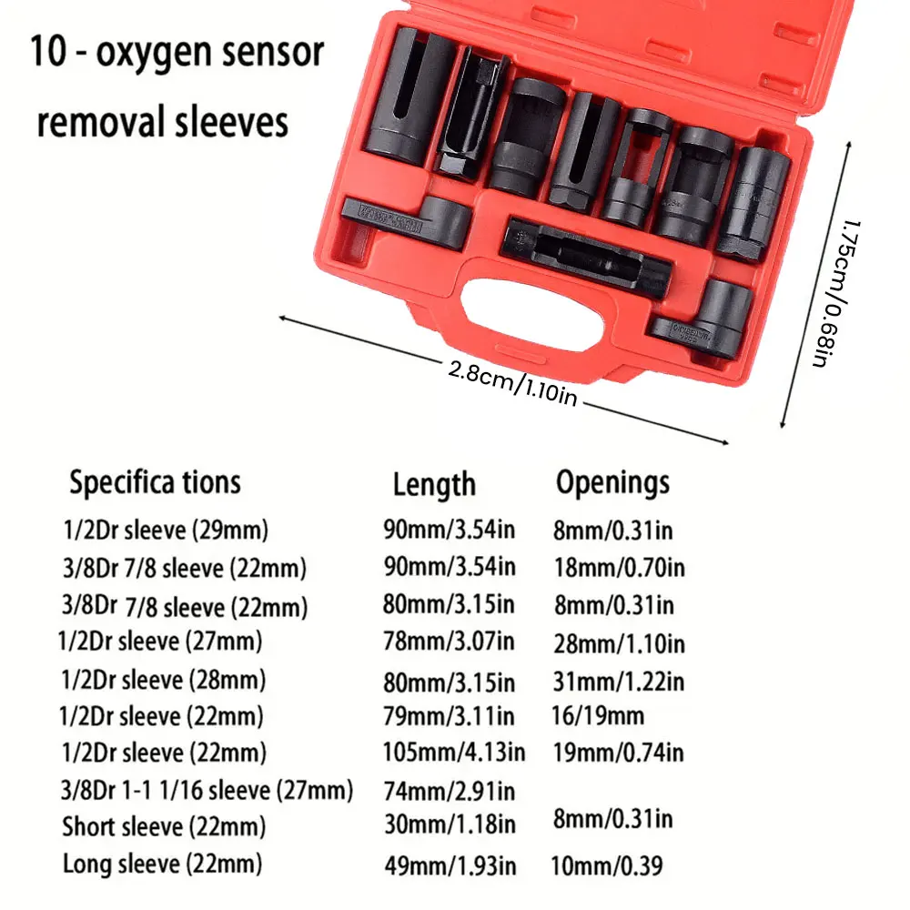 REMOVE OXYGEN SENSORS FROM YOUR VEHICLE: This 10 Piece Specialty Sockets O2 sensor Tool Set You Quickly and Easly Remove oxygen Sensors, oil pressure sending unit, fuel Injectors, and vacuum switches; Some O2 supply parts feature cuout sides to prevent Davage to wires and tubes; Remove and install parts on most domestic and some international Vehicles