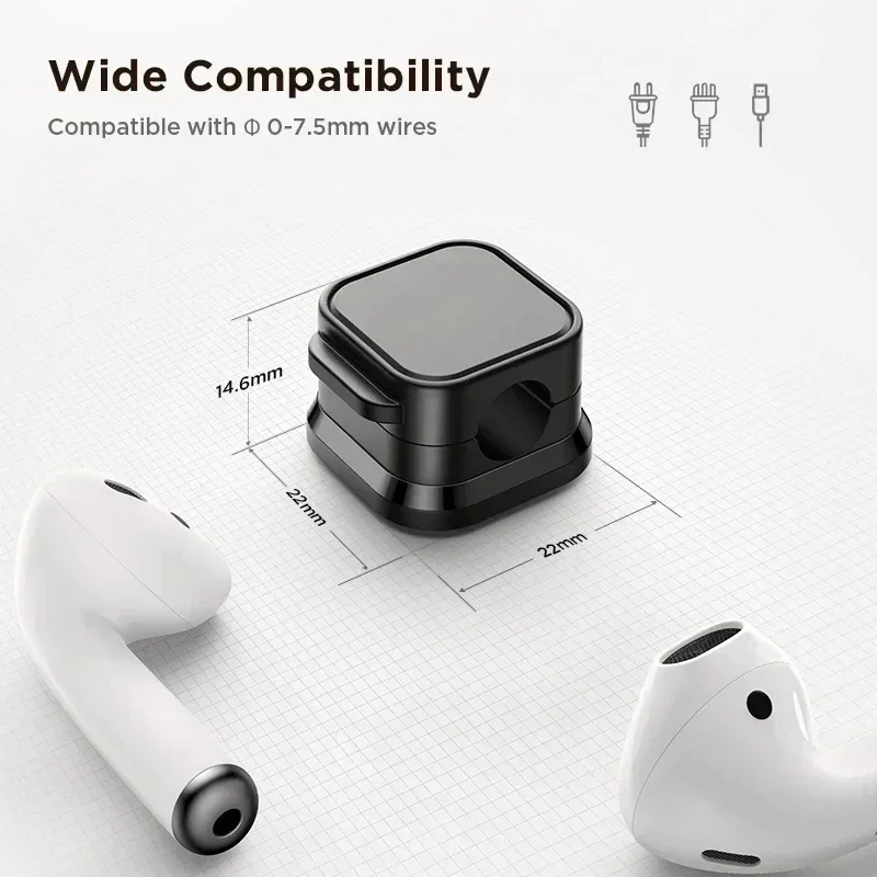 1.【7.5 mm Perfect Cable Slot Diameter】Diameter of 0.3 inches (7.5mm) can hold most cables, such as phone charging cables, USB cords, HDMI thick cables, computer power cords, etc. Besides that, the slot diameter of 7.5mm can perfectly hold a charging head as small as the iPhone original silicone charging cable without falling off, and the held cable can be pulled out smoothly for use.