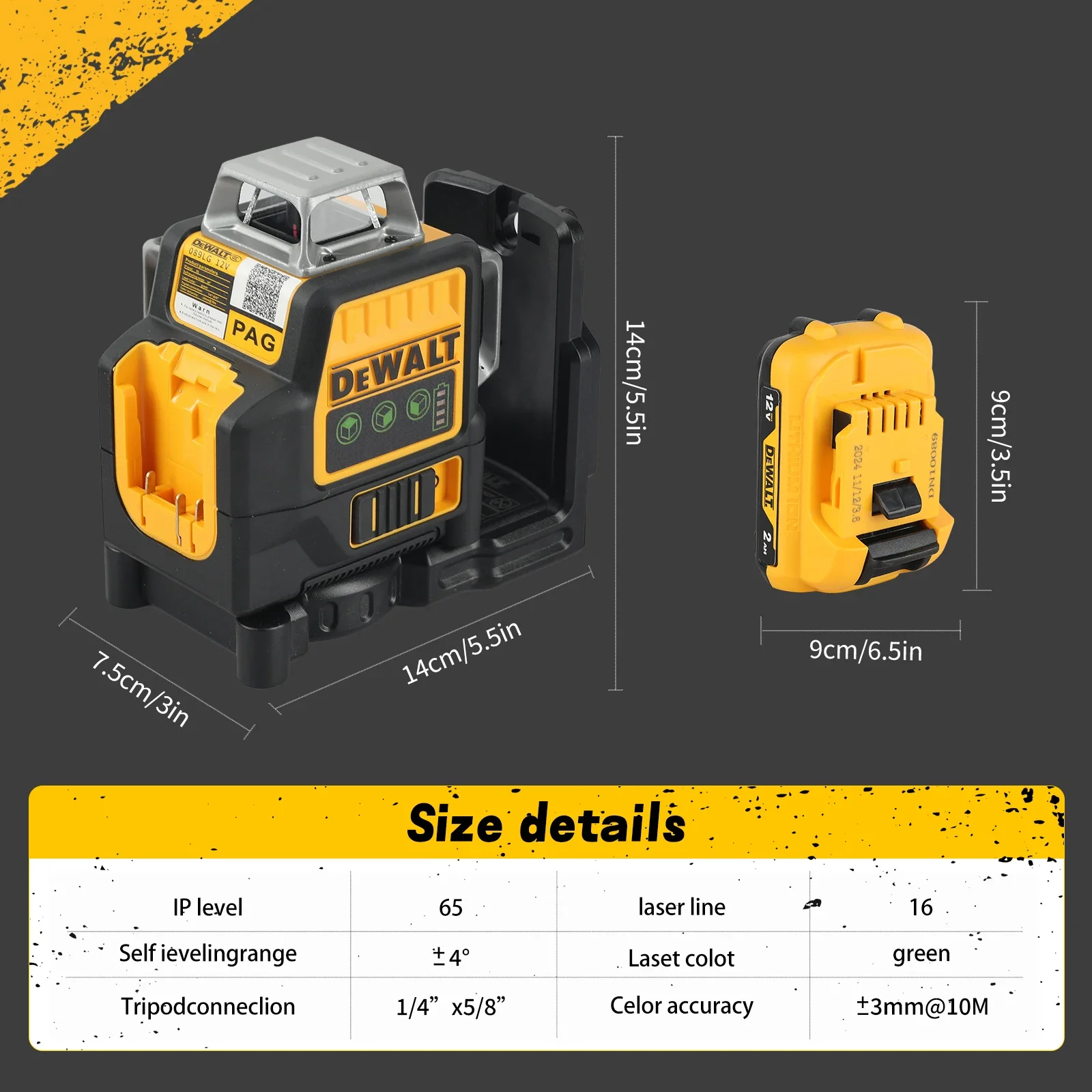 2025 New! DEWALT DW089LG Laser Level - 12V Lithium Battery, 360° Horizontal & Vertical Green Lines, 3 Sides Coverage