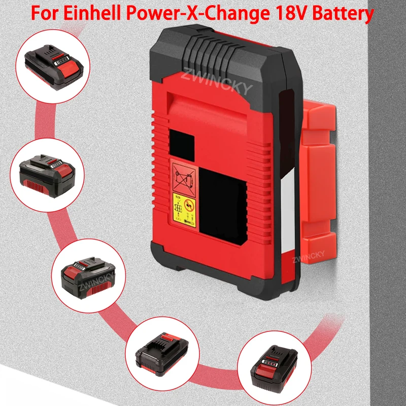 ▼ Compatibility: This battery holder is specifically designed for Einhell Power X-Change 18 V batteries, providing a secure and space-saving solution to store up to six batteries safely on walls or shelves.