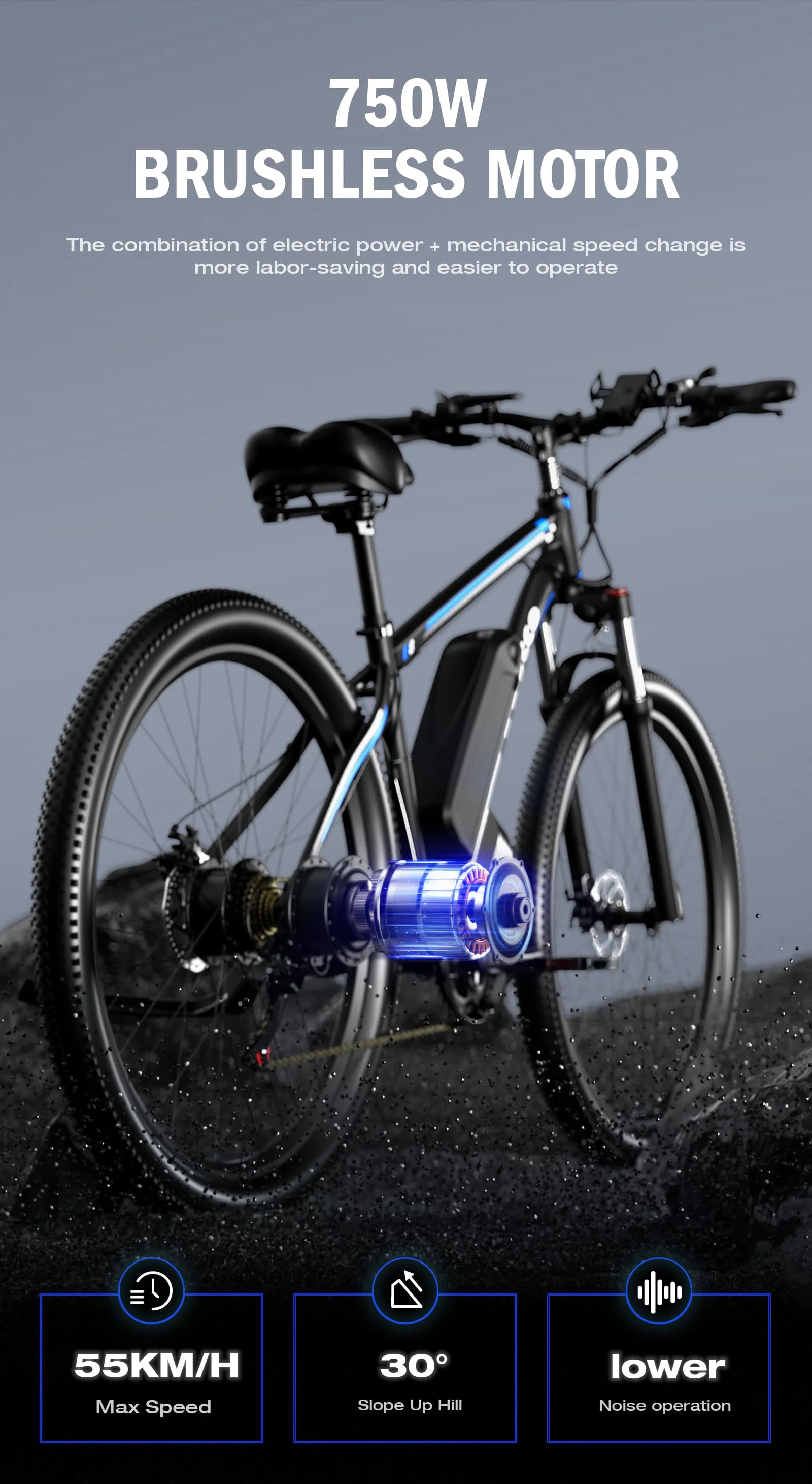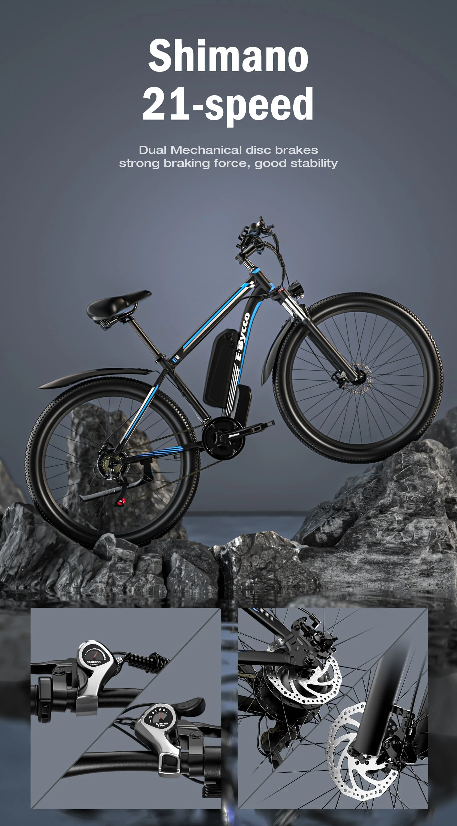Ebycco E8 E Bike 750W Brushless Motor 48V17.5AH Removable Battery 21-Speed Electric Bicycle 29-Inch Tires Mountain Electric Bike