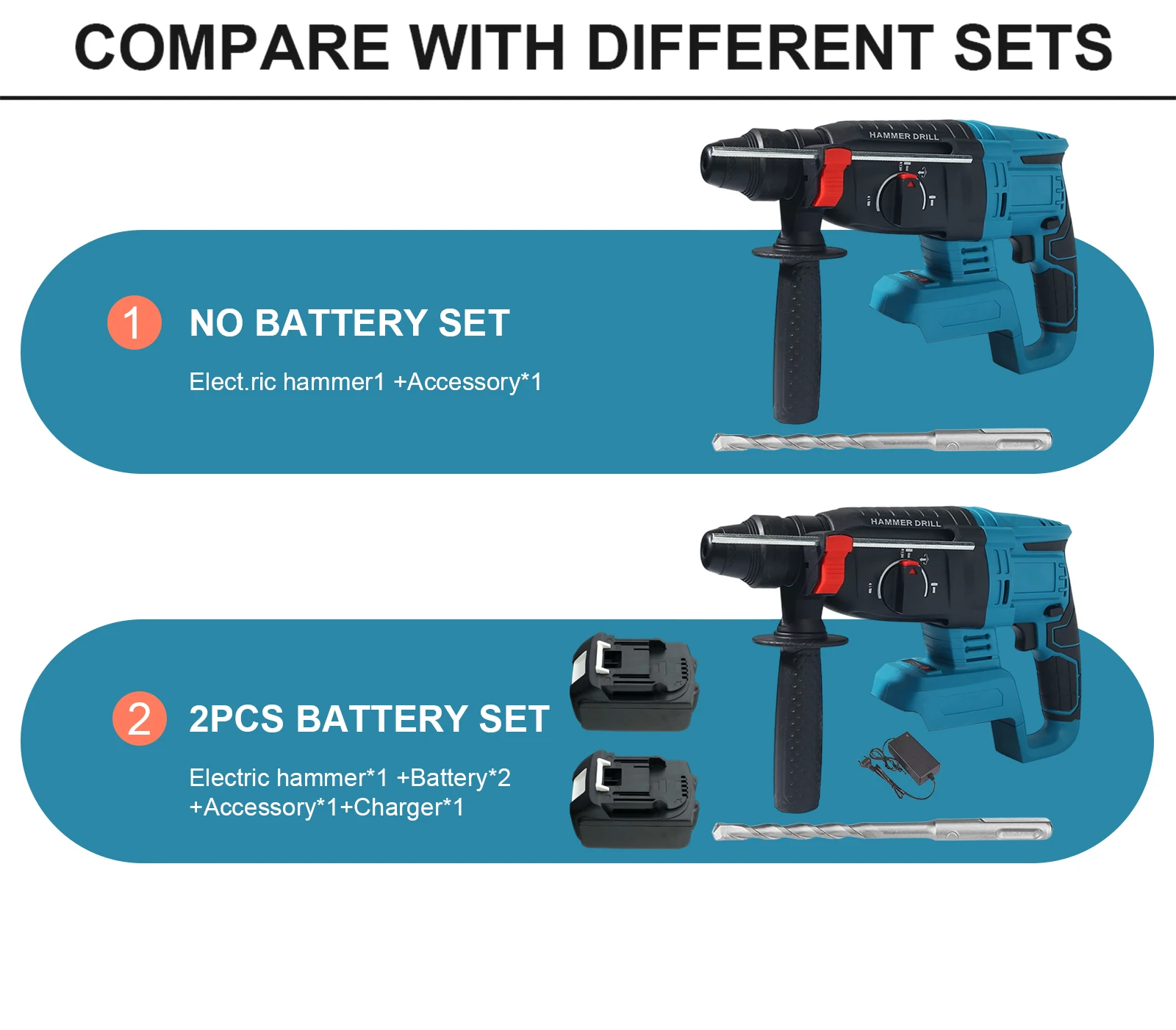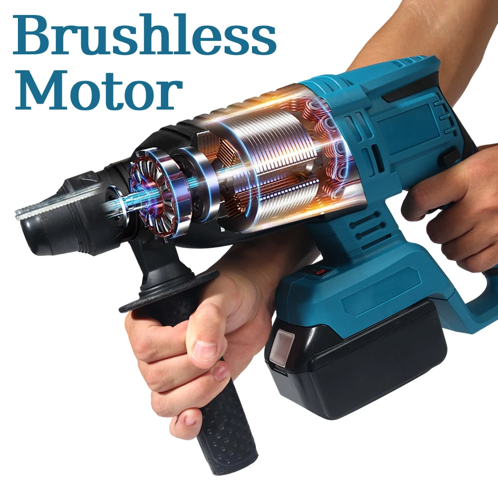 26MM Brushless Electric Hammer Drill Multifunctional Rotary Cordless Rechargeable Power Tool Impact Drill For Makita 18V Battery