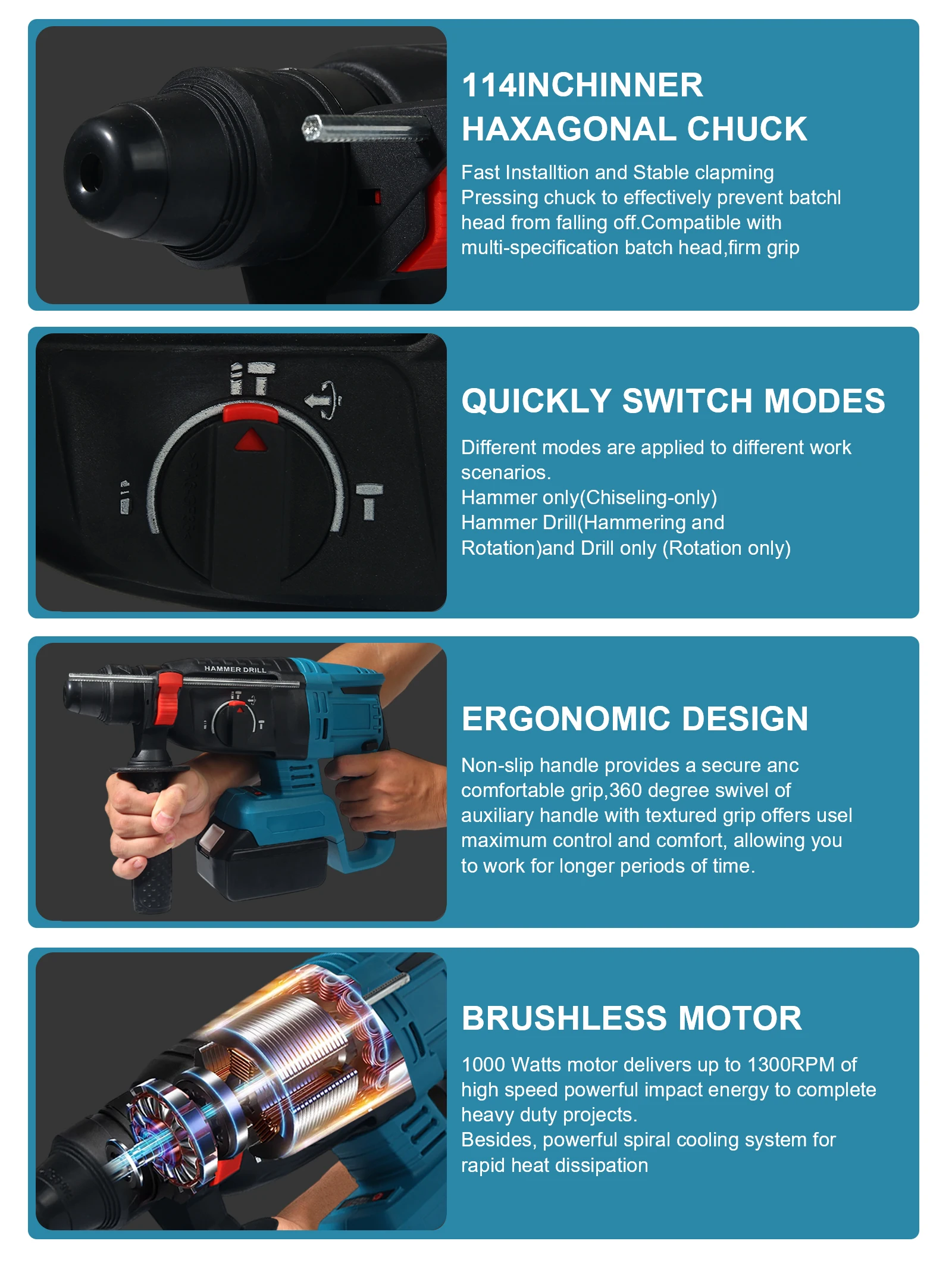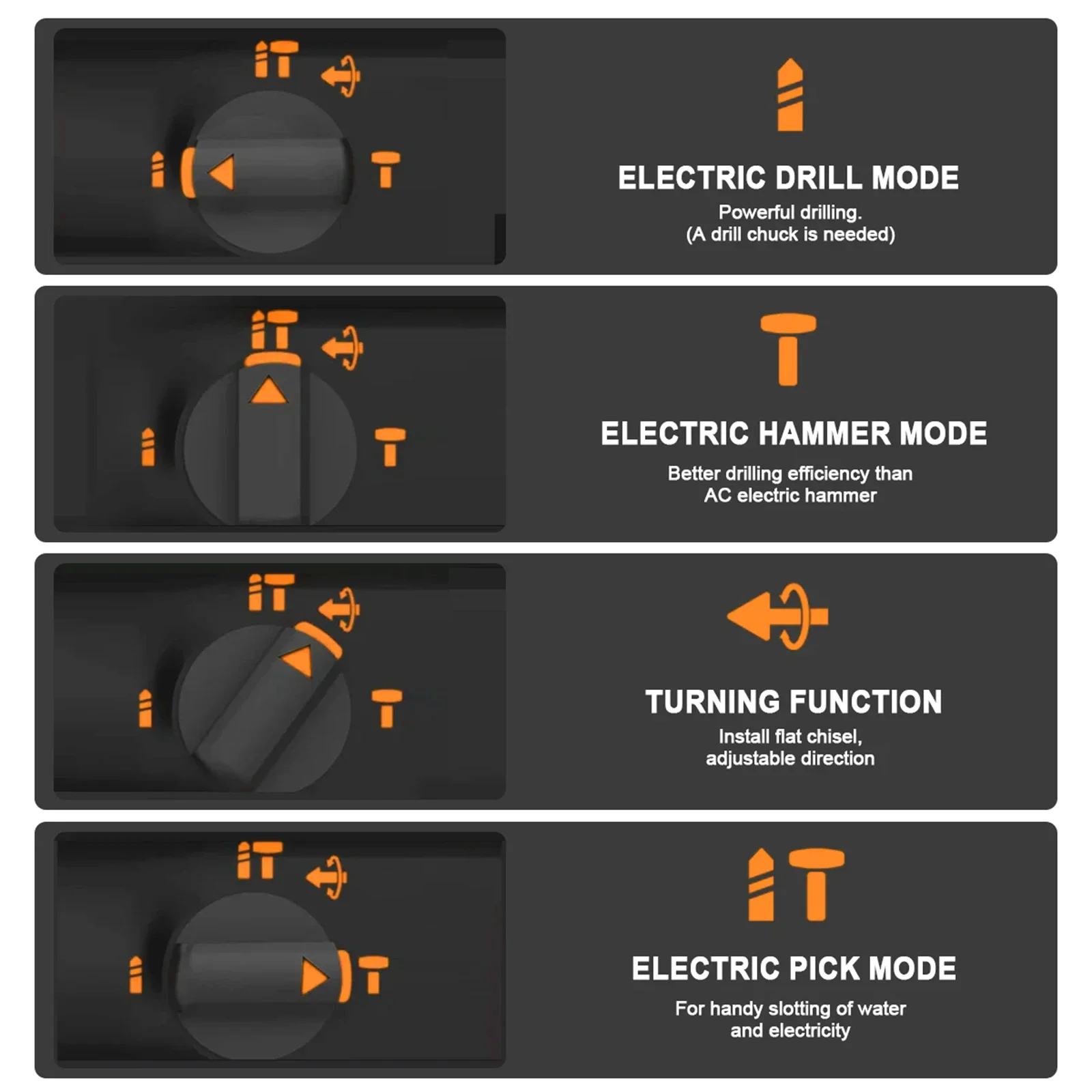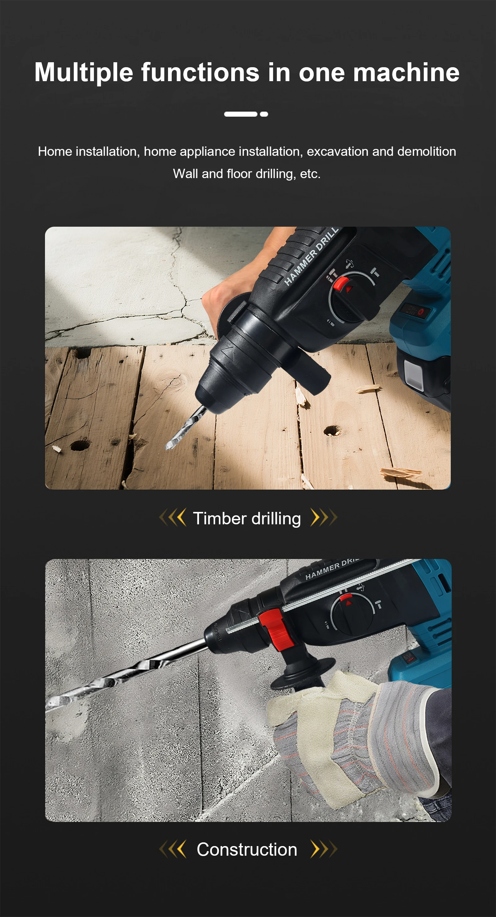 - Electric hammer mode:Higher drilling efficiency than AC electric hammer