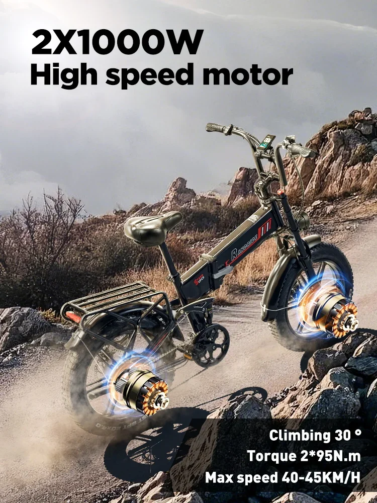 YX20M E Bike 1000W*2 Dual Motor 48V20AH Battery Fork Shock Absorber Electric Bicycle 20-Inch Fat Tires All Terrain Electric Bike