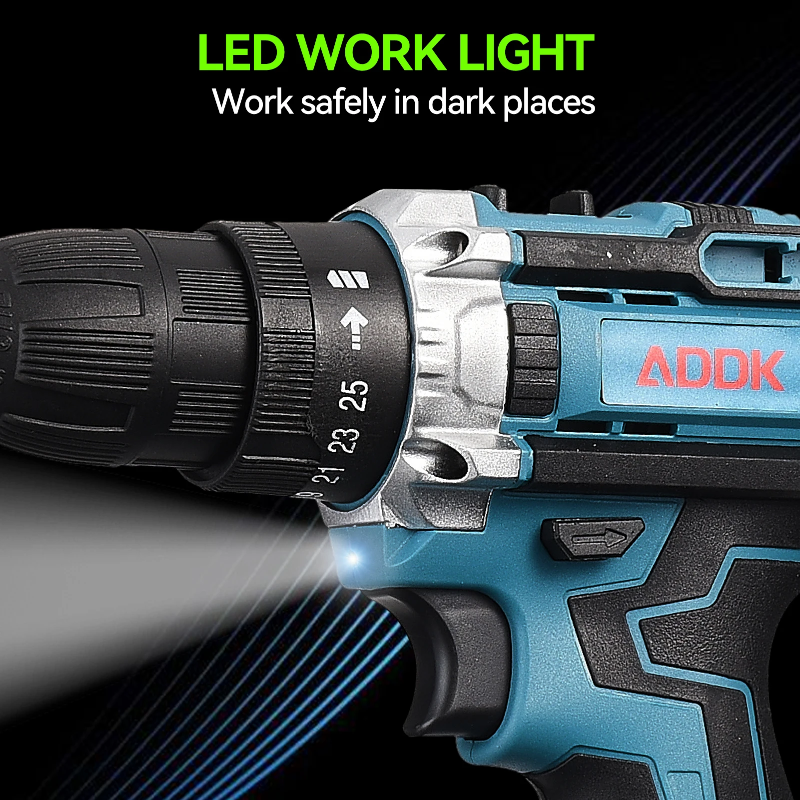 4.EASY TO OPERATE: The drill is ergonomically designed for a non-slip grip, and the LED light helps you see in dark places. With the carrying case, you can easily store your tools.