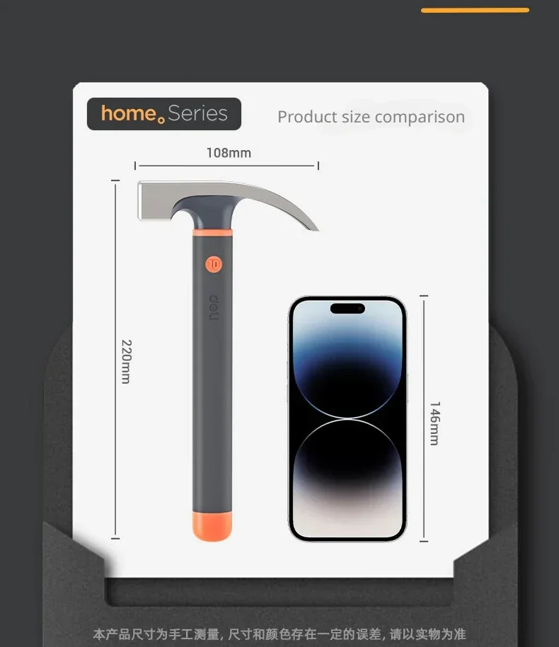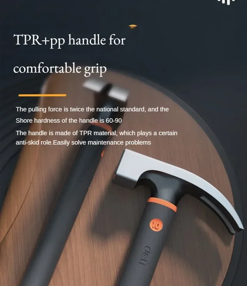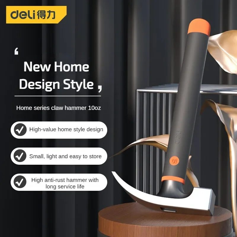 Deli 10oz Claw Hammer Mini Camping Hammer Nail Hammer with Shock Reduction Grip Woodworking Hammer Household Repair Hand Tools