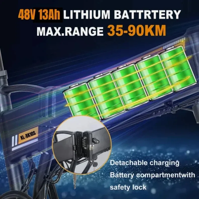 E Bike 750W Brushless Motor 48V13AH Removable Lithium Battery Foldable Electric Bike 20-Inch Tire Commuting Electric Bicycle