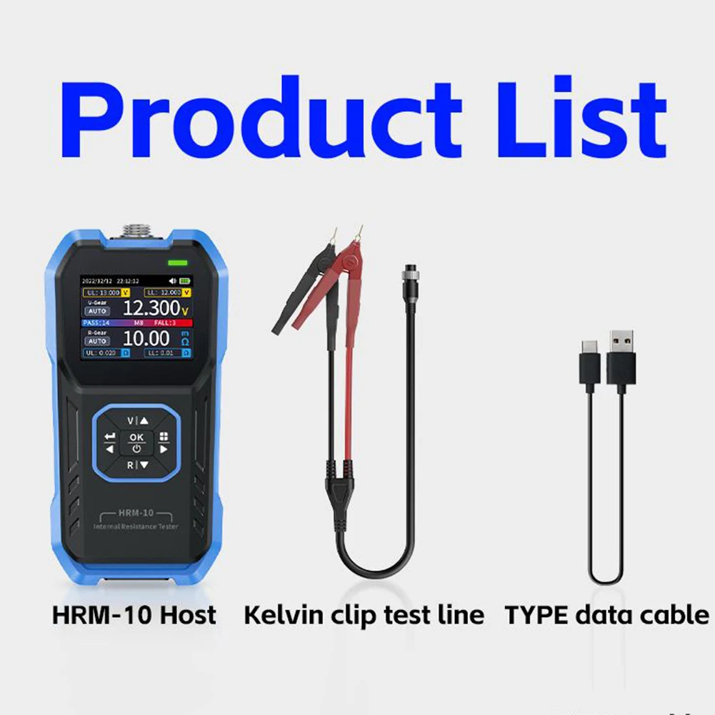 E: 1*Internal Resistance Meter + 1*Internal Resistance Meter Probe + 1*Internal Resistance Meter Kelvin Clip + 1*Battery Holder + 1*USB Cable