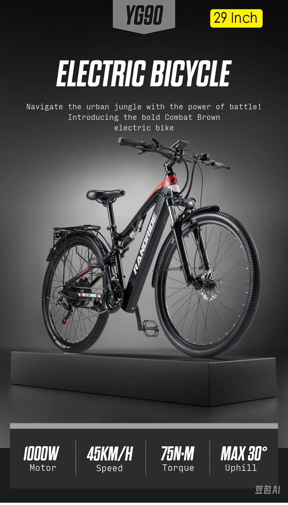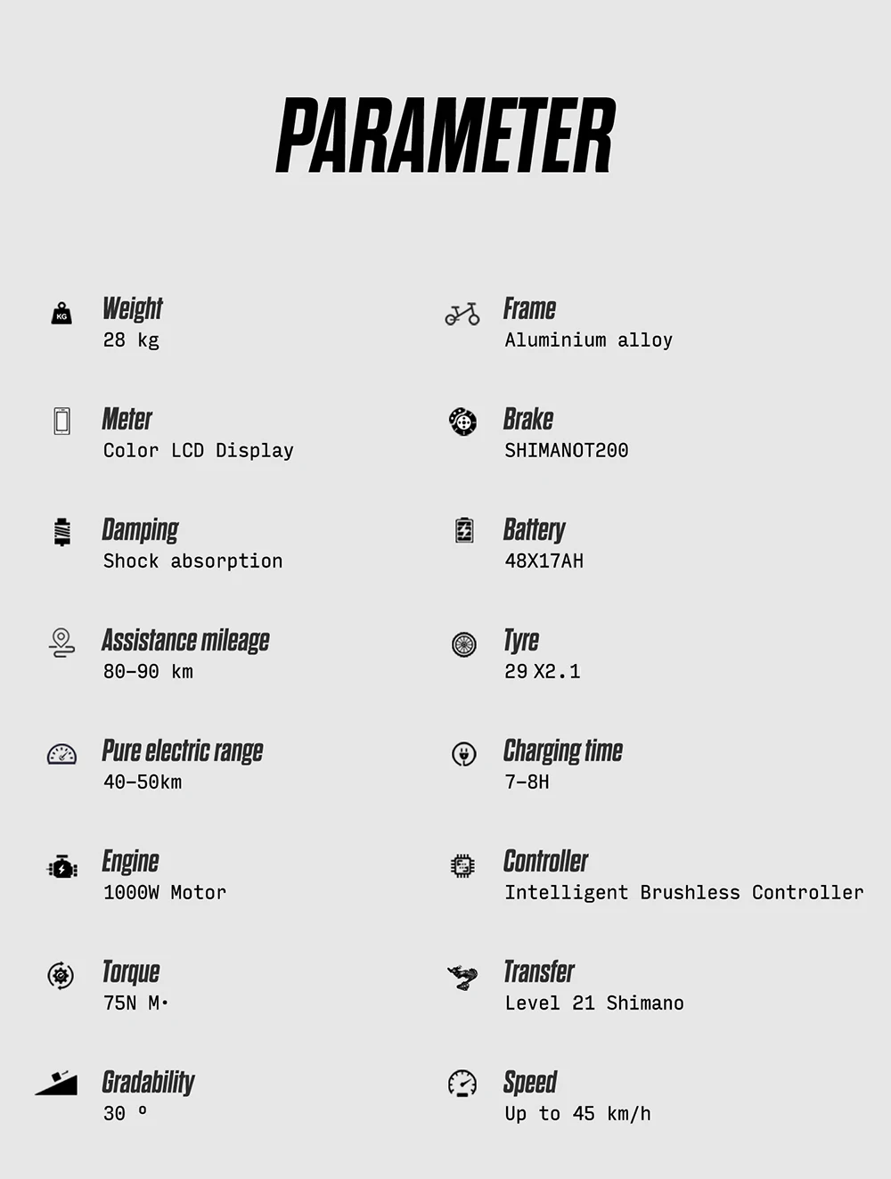 Electric Bike 1000W Motor 48V17AH Removable Battery Hydraulic Brake E Bike 21-Speed 29-Inch Tire Mountain Electric Bicycle