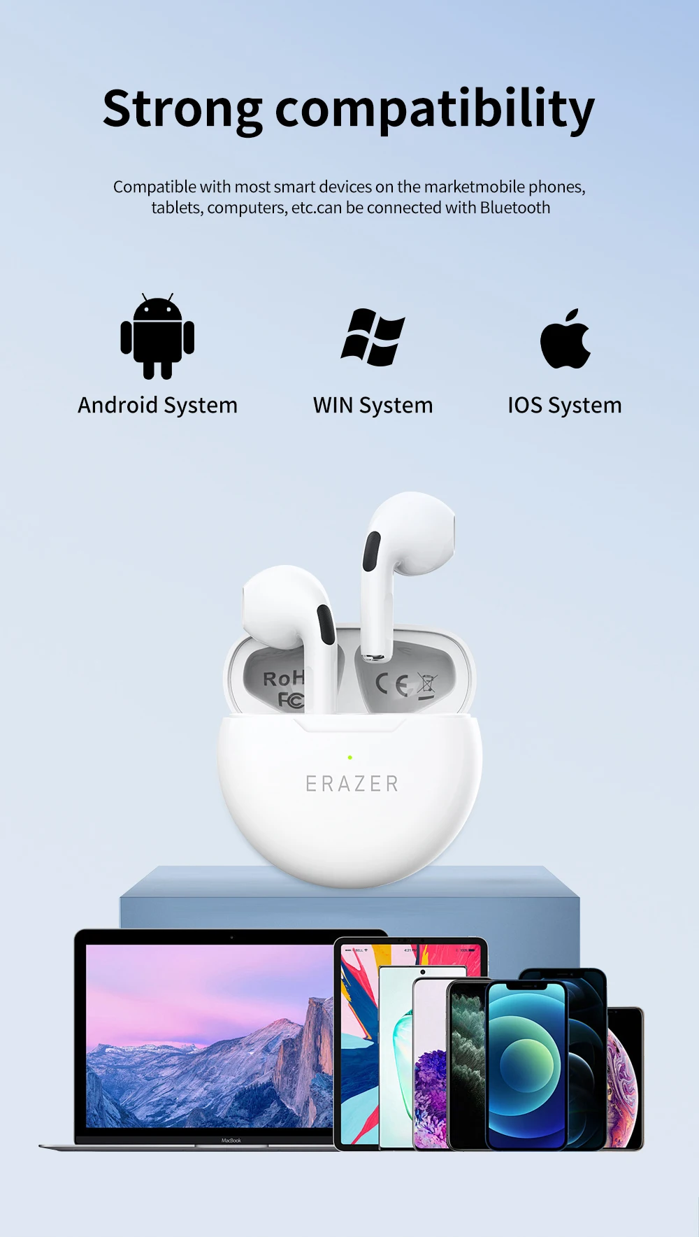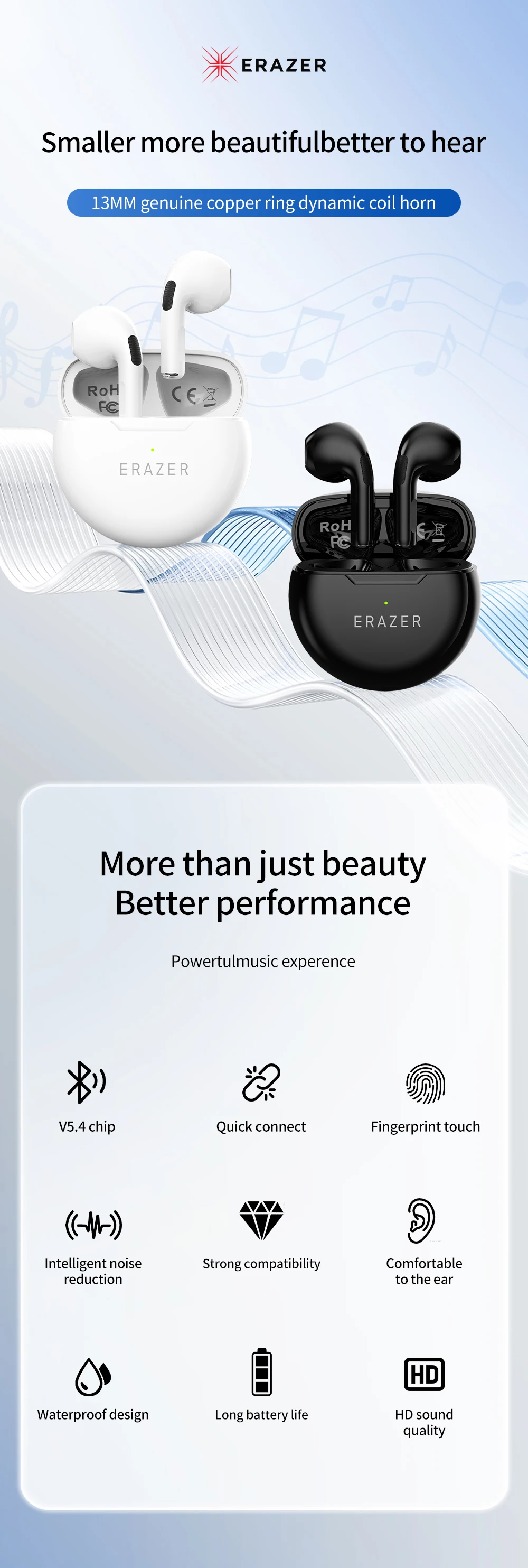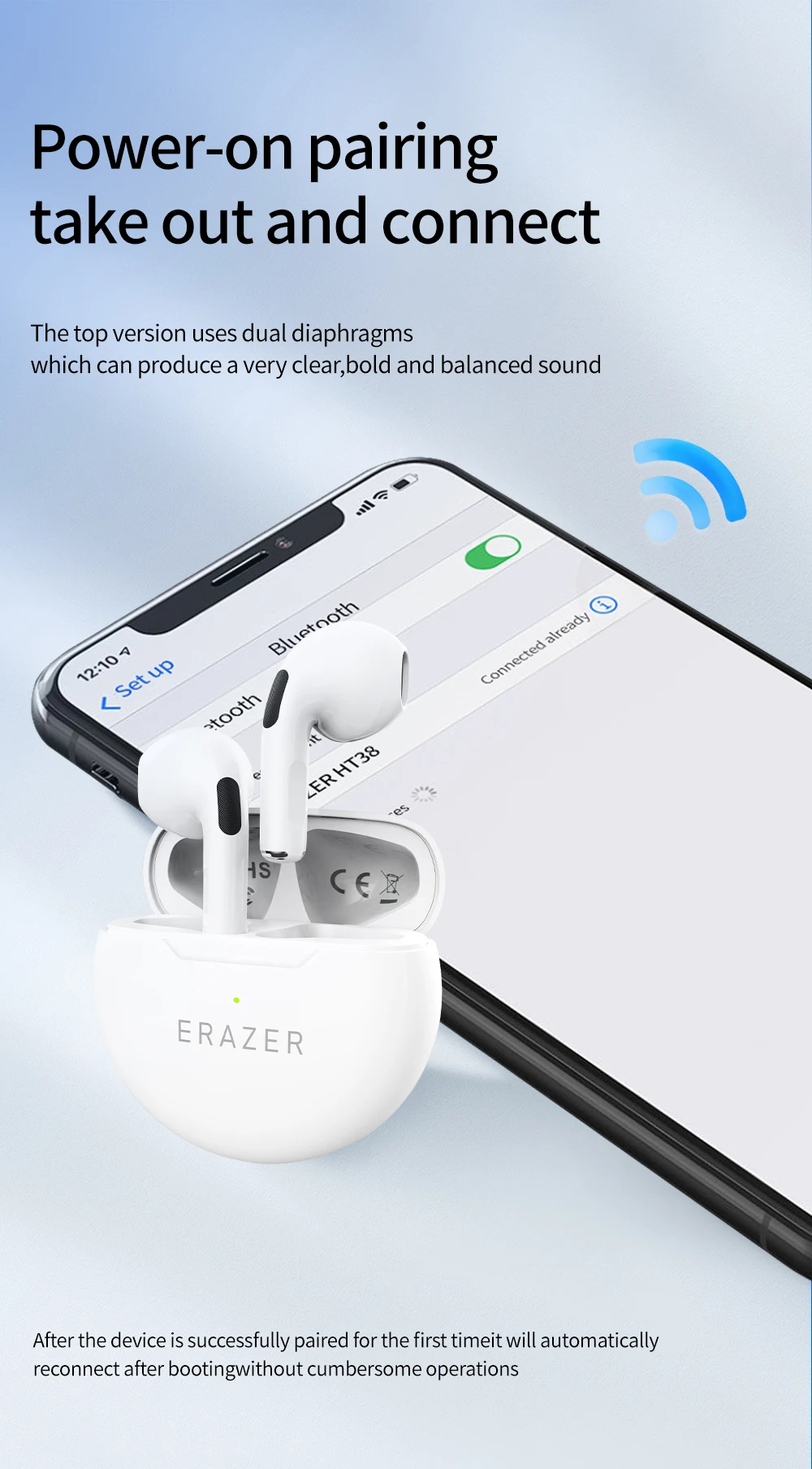 ERAZER HT38 Wireless Earphones Bluetooth 5.4 Support TWS With Microphone Noise Reduction High Sound Quality Headphone For iphone