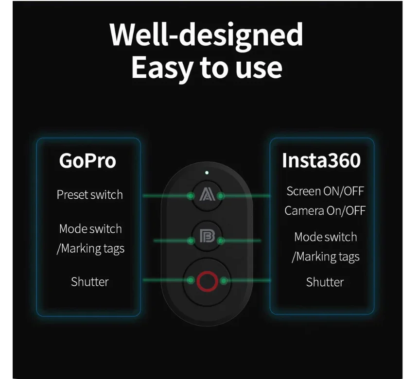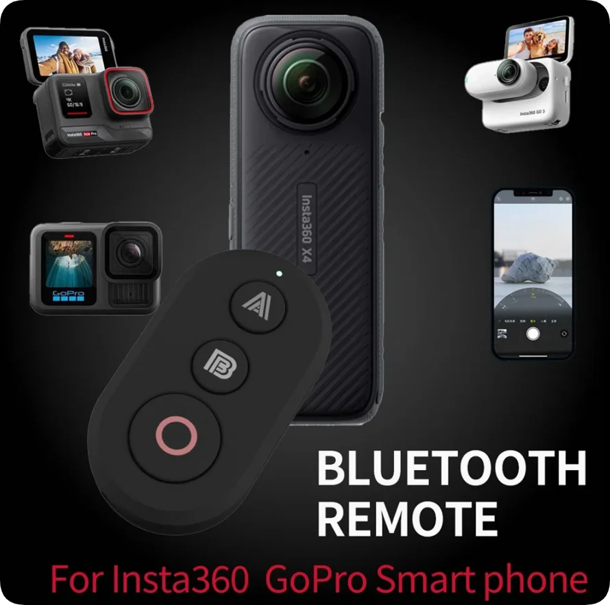 Take control of your shots with the Bluetooth Remote Control Wireless, compatible with smartphones and cameras like Insta360, GoPro X2/X3/X4, Go3/Go3s, ACE pro, ACE pro2, and GoPro 13/12/11/10/9/8. This handy device offers seamless wireless operation, allowing you to capture photos and videos effortlessly from a distance. Perfect for action shots, vlogging, or group photos, it’s an essential tool for any content creator. Get yours today and enjoy convenient, remote control over your devices!