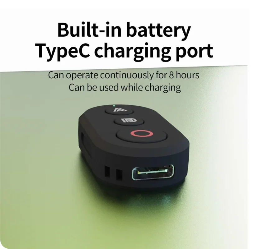 Long-lasting Battery Life: Featuring a built-in battery with a Type-C charging port, this remote control can operate continuously for up to 8 hours. You can even use it while it's charging, ensuring you stay powered up during long shoots.