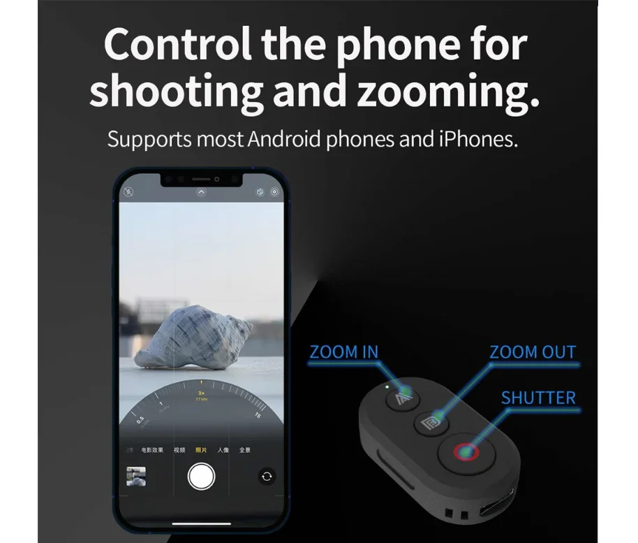 Intuitive Functionality: Designed for ease of use, this remote control allows you to switch between camera modes, manage camera screen on/off (INSTA only), and wake up your camera with a single tap—making mobile phone photography straightforward and efficient.