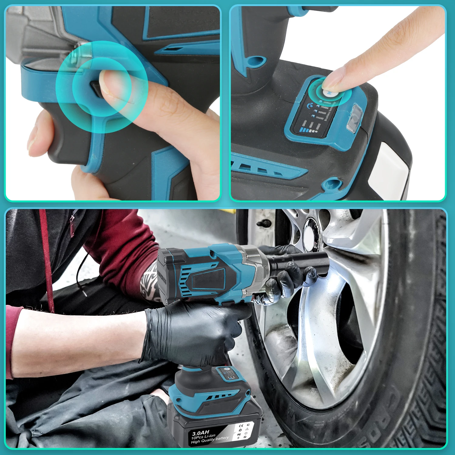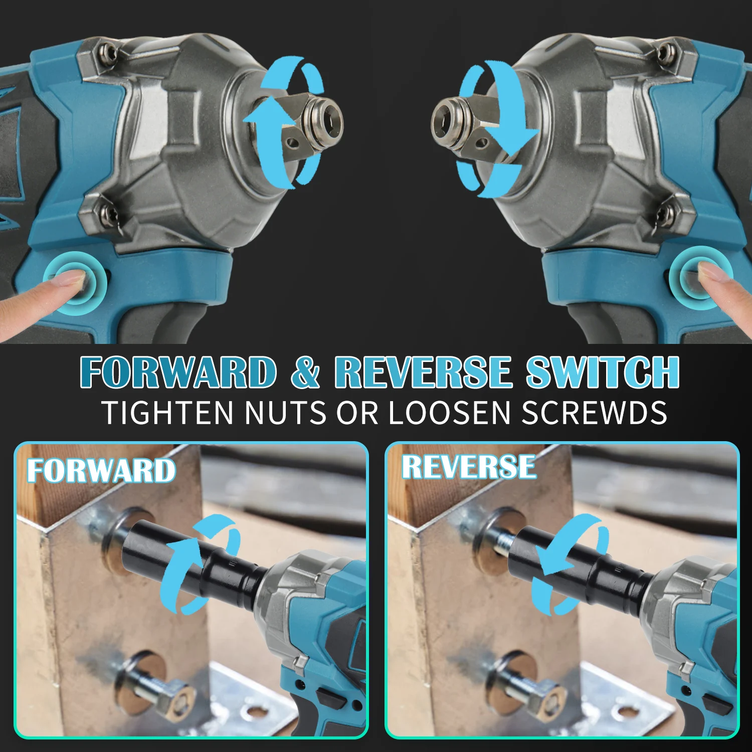 This cordless impact wrench is perfect for all your different work scenarios! It has four gears to switch between, so you can choose between low and high gears. It is easy to use, gives you more precise control and saves more power.