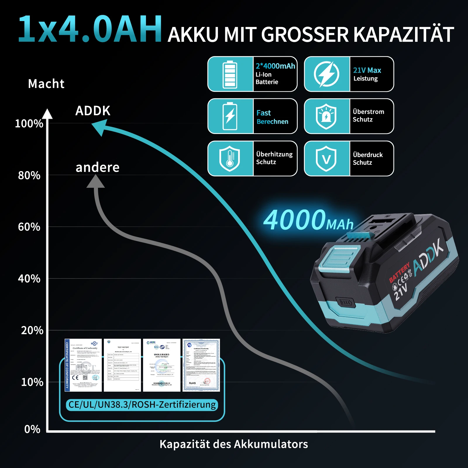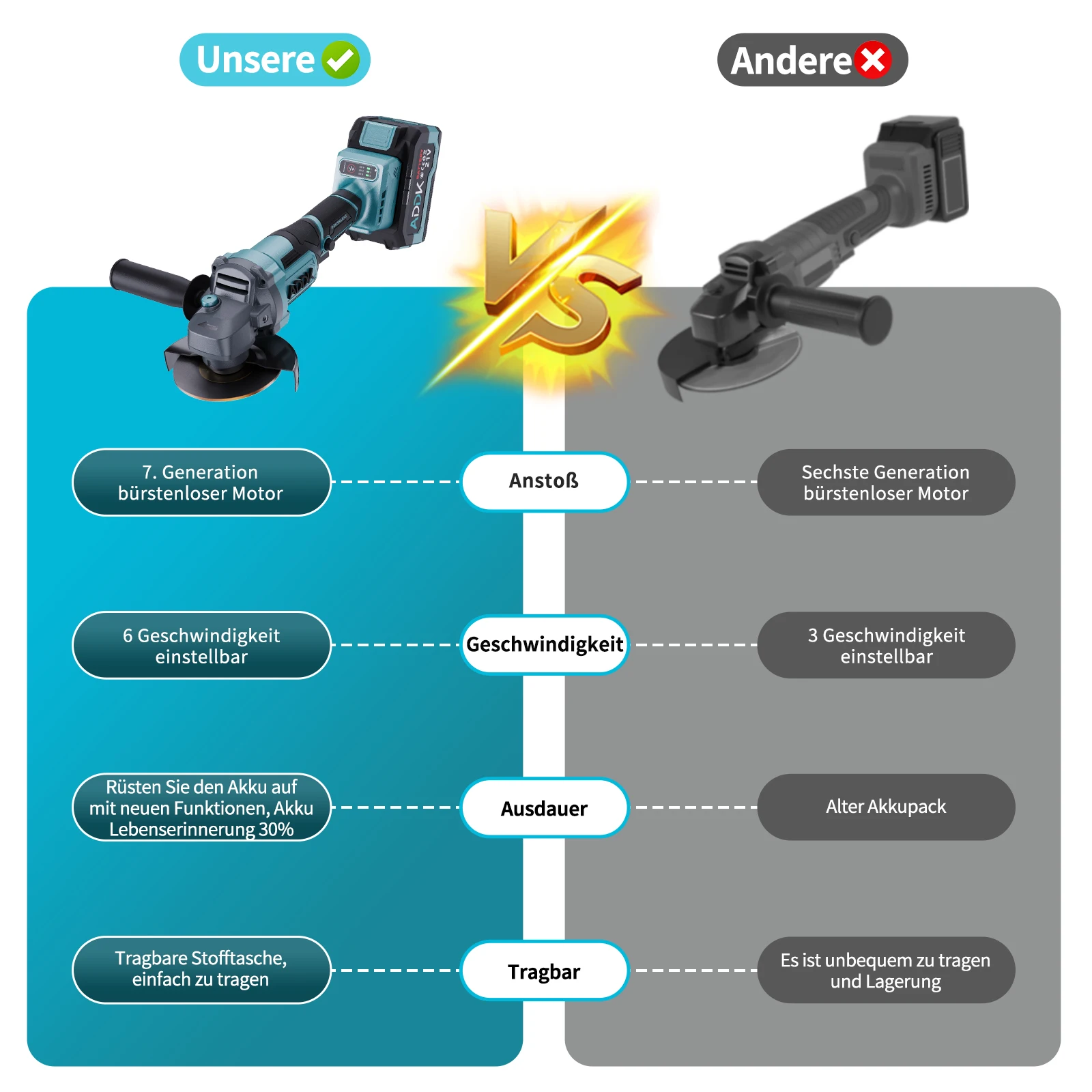 【Durable and Efficient】: We know that battery life is a major concern for users. The ADDK angle grinder is equipped with a new high-performance lithium battery, which has a battery life that is 30% longer than traditional 4.0 Ah batteries. This means you can work for a long time without worrying about low battery power. The LED power indicator shows the remaining power in real time so that you can track usage.